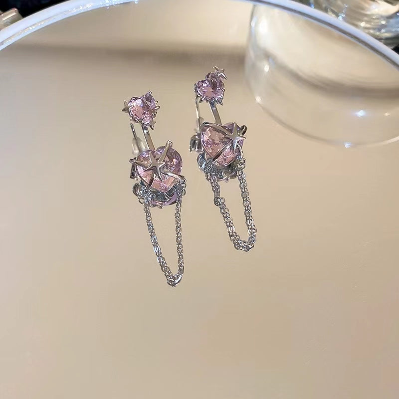 Pink zircon love Bow Earrings sweet cool Earrings