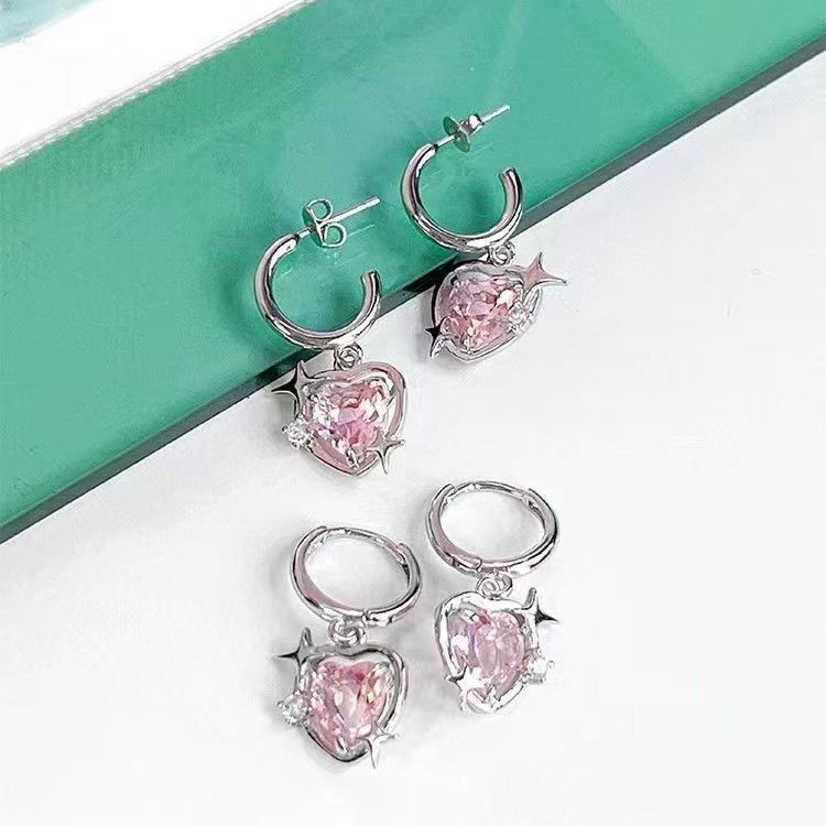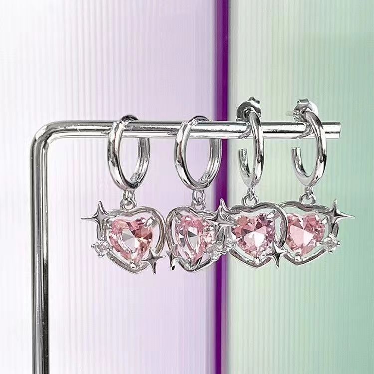 S925 silver peach Zircon Earrings Pink Love Crystal inlaid Earrings