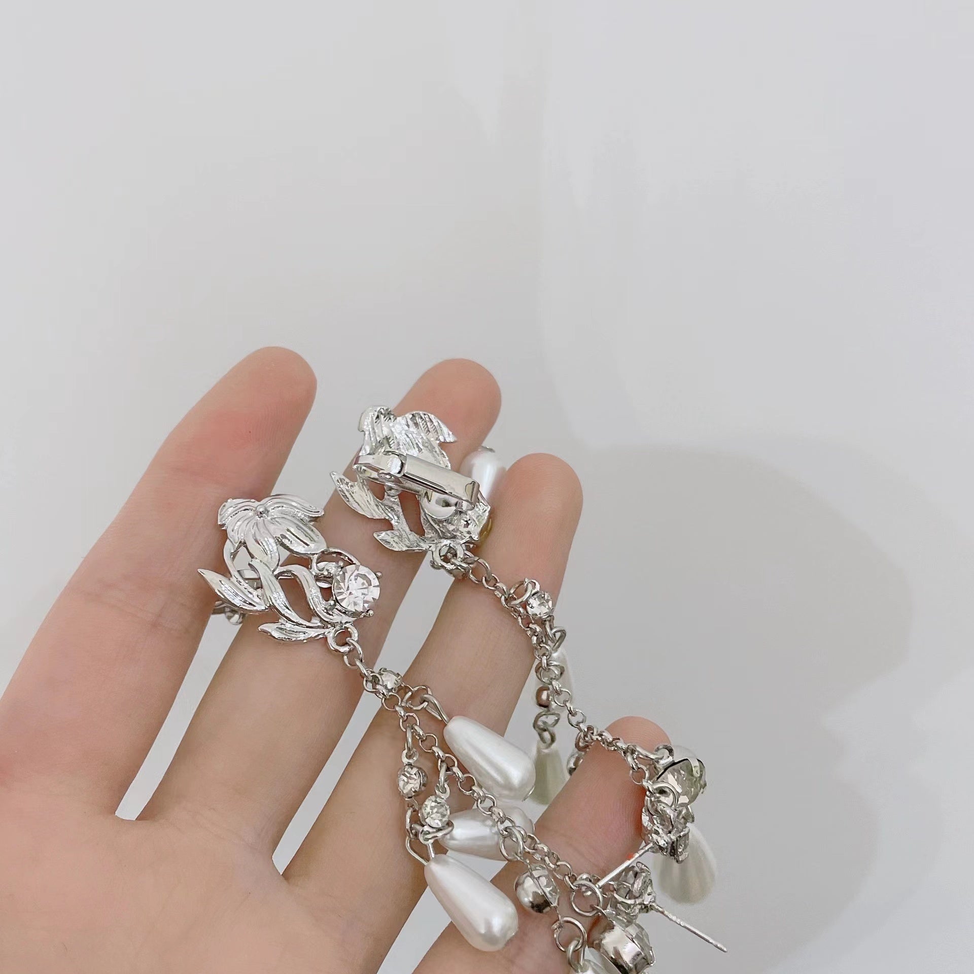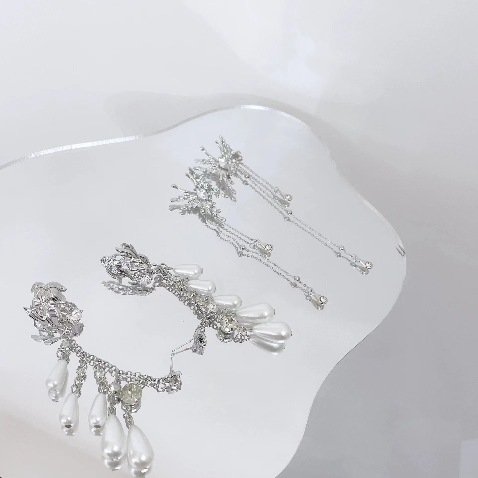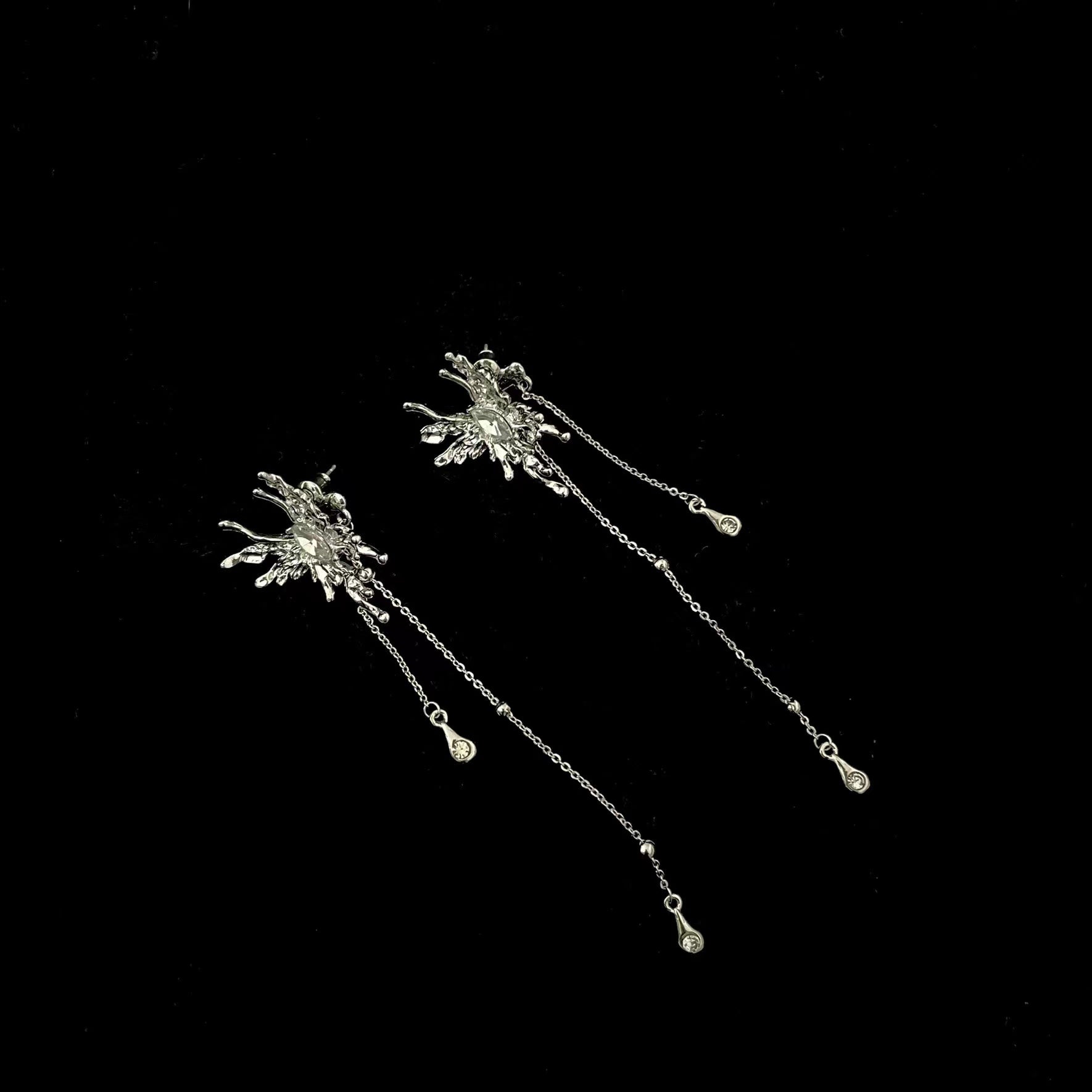 Beautiful smart gemstone water drop arc Earrings Silver Needle Earrings