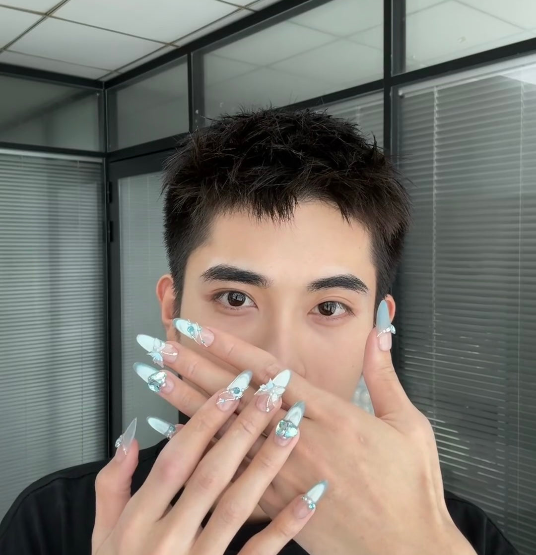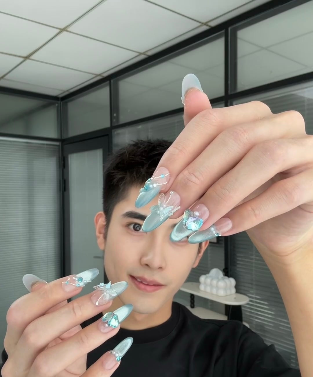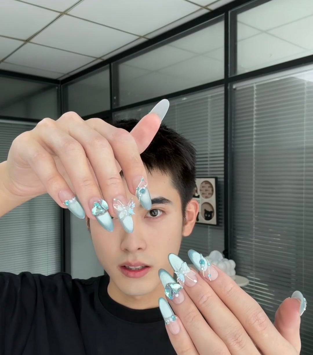 Elegant Blue Butterfly Nail Set with Gemstone Accents