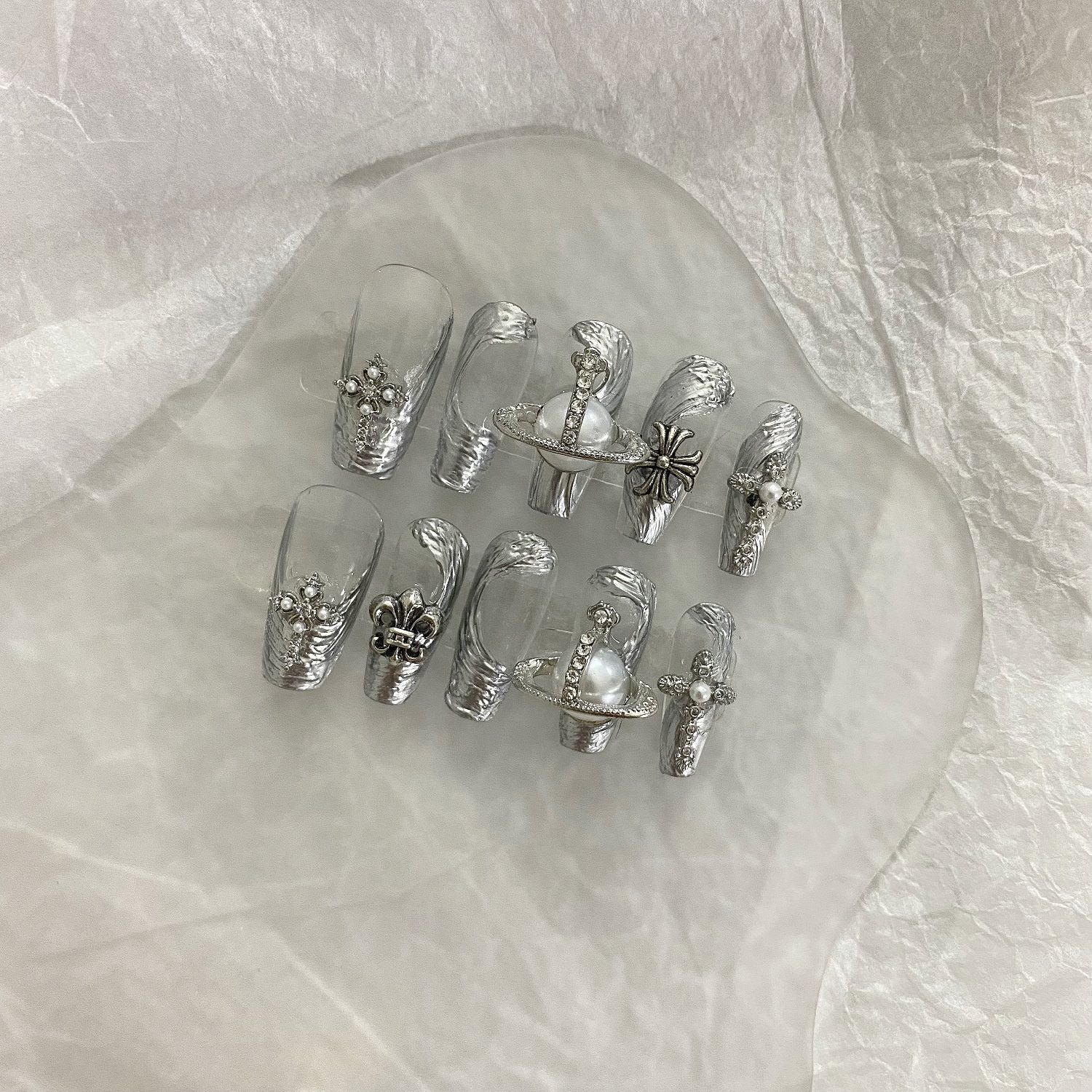 Europe and the United States y2k Crostar Western Queen Mother Superior mirror hot girl metallic sense nail