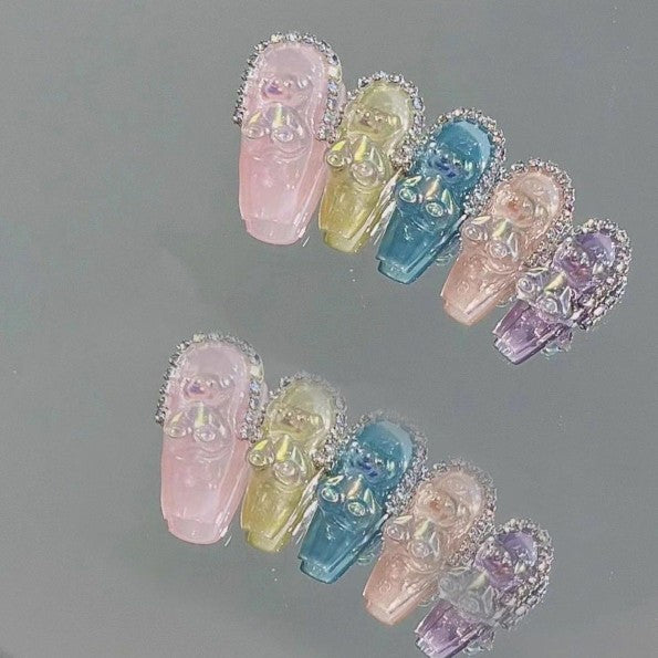 False nail enhancement patch student color chain drill bear removable wear nail spring and summer new nail patch