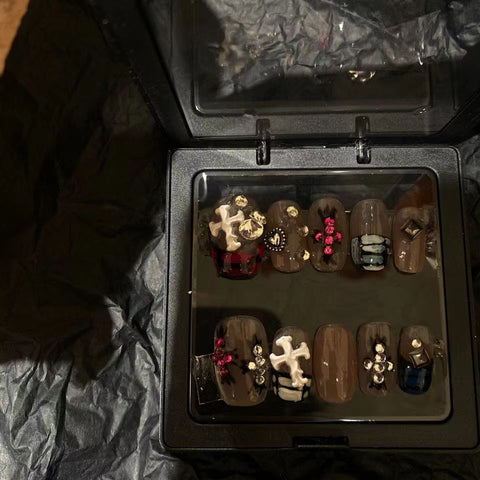 Queen West short cute black and pink Crocodile nail patch hand wear nail removable