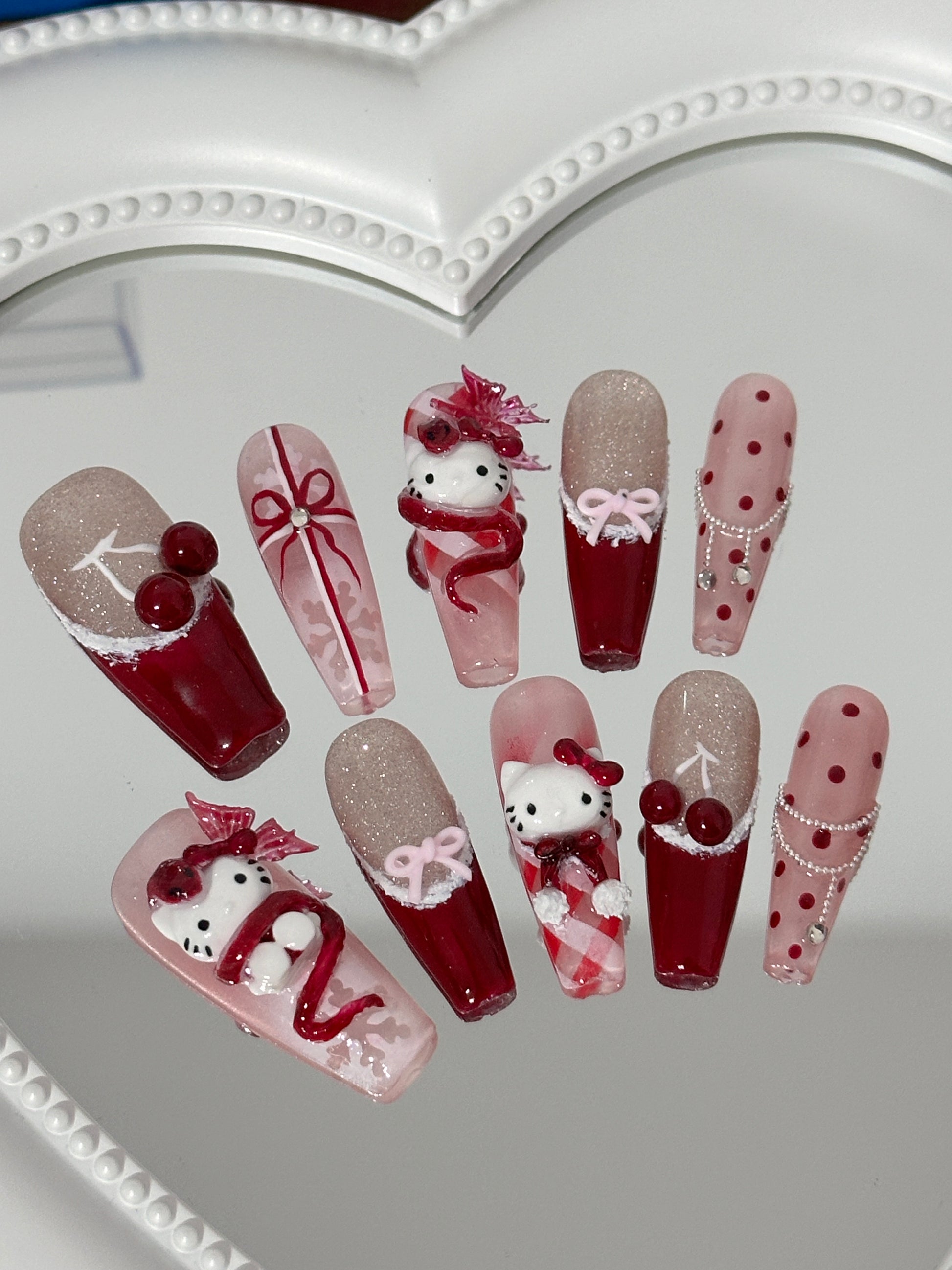 Festive Hello Kitty & Cherry Nail Art(size M)