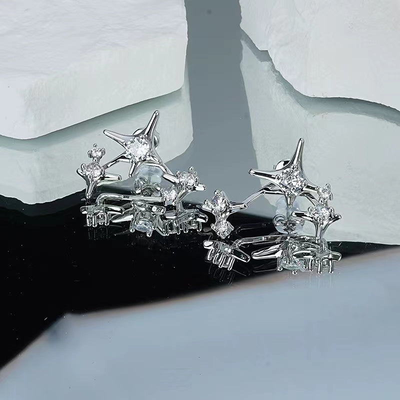 Four mangoes earrings female niche design sense net red geometric silver needle earrings autumn and winter with fashion senior sense earrings