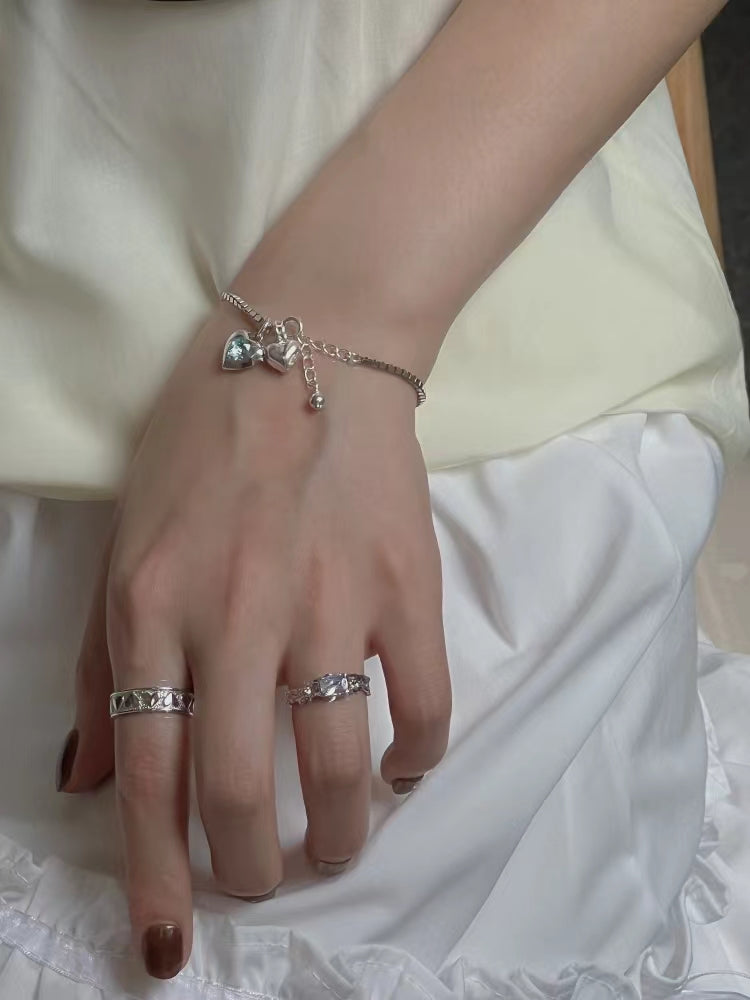 Hand made original design S925 silver exquisite heavy industry Blue Zircon Love Box Chain Bracelet (female)