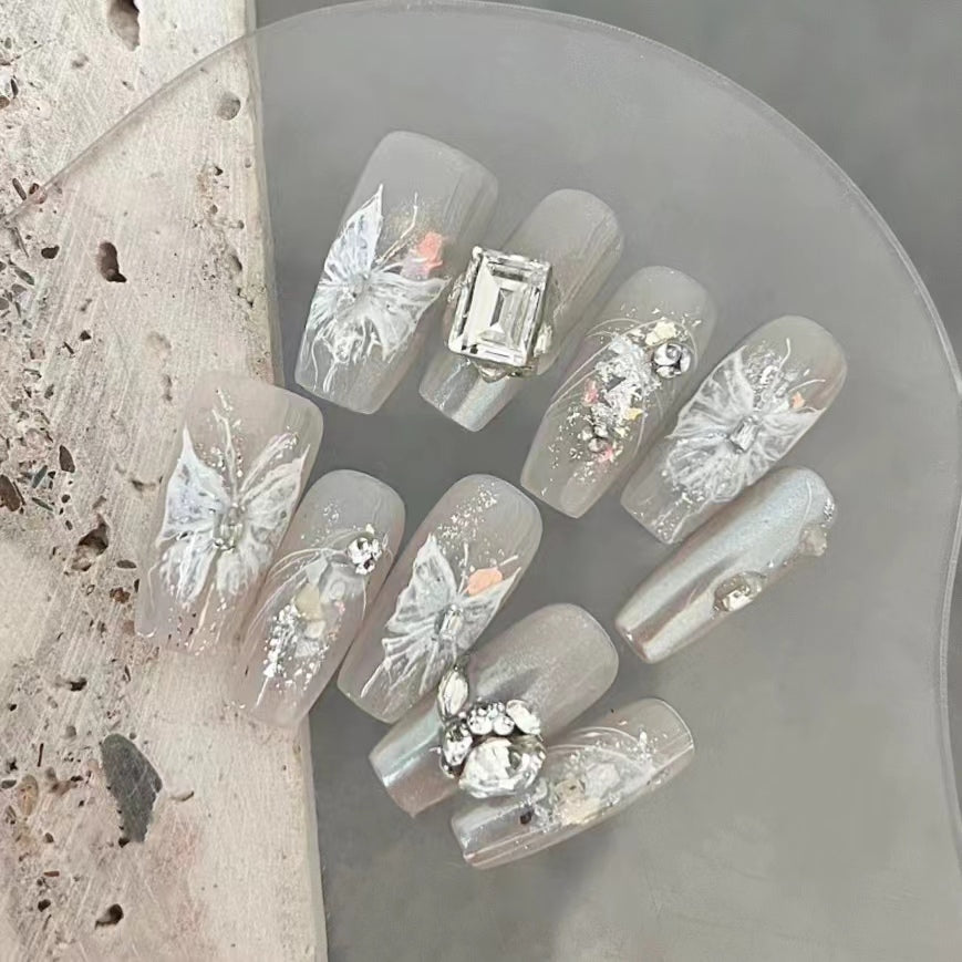 Handdrawn Flower Carving with Transparent Bottom Square Diamond Wearable Nail Art