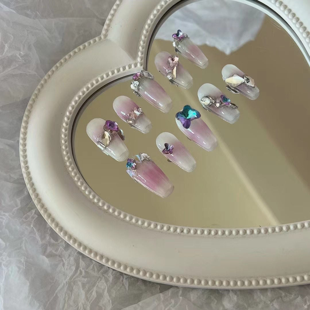 Handmade custom wear armor medium-length purple ice through butterfly removable ins senior wind