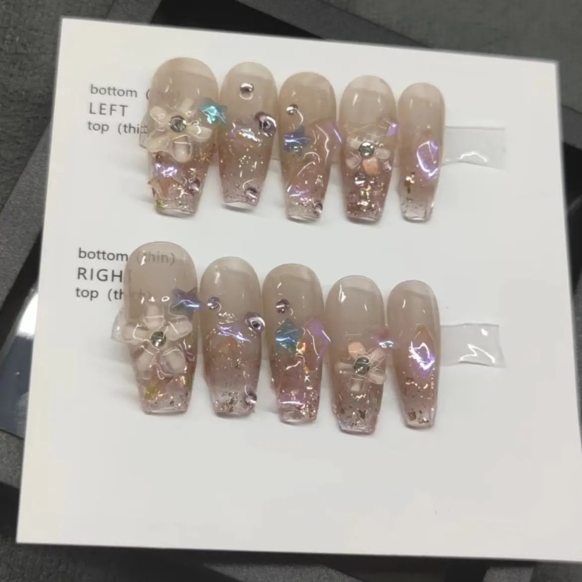Handmade wear nail finished nail piece burst three-dimensional small flower aurora diamond wear nail can be removed removable