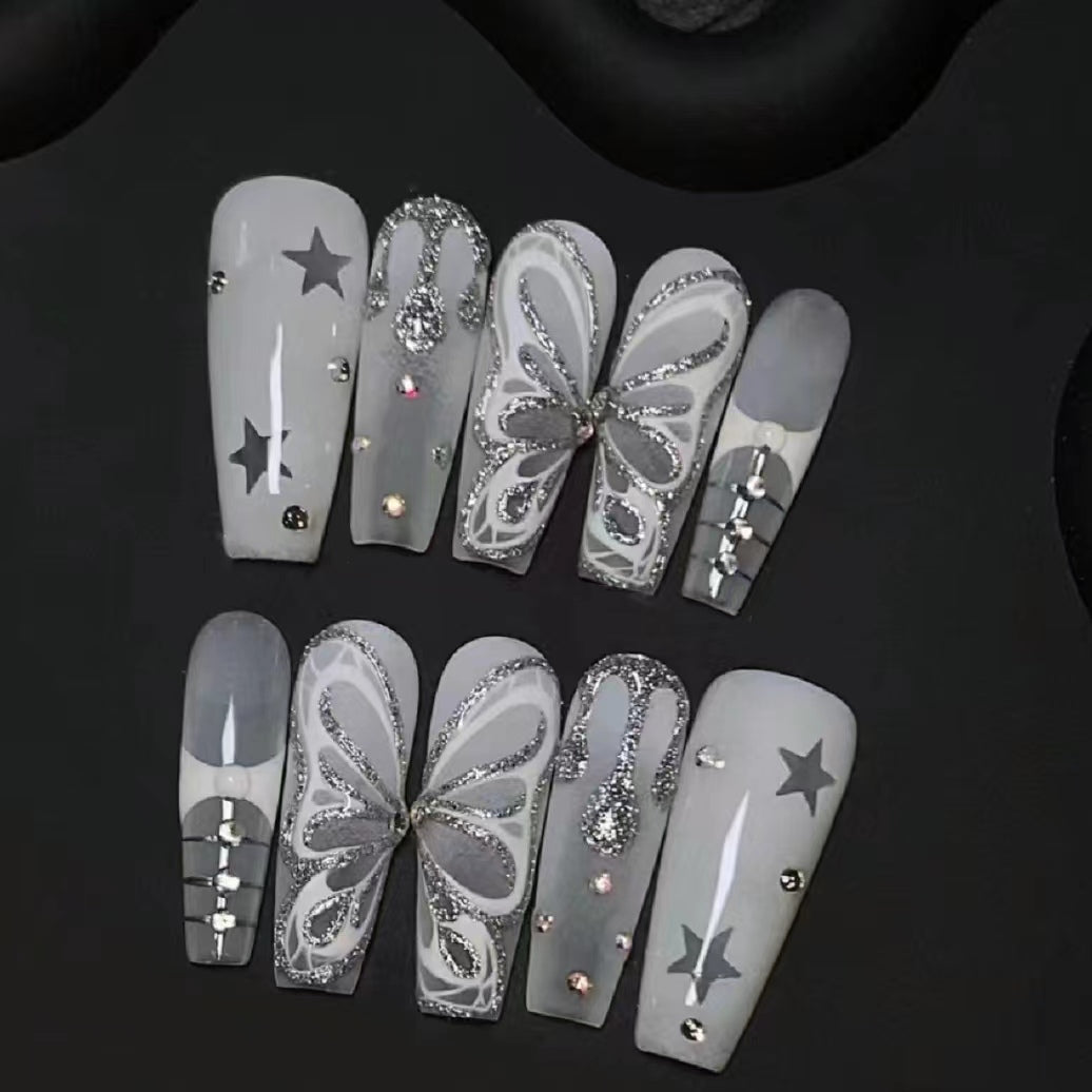 Handmade Wearing Armor with Dark 3D Relief Cat Eye Black Sparkling Diamond Butterfly Style Long Ladder Wearing Armor