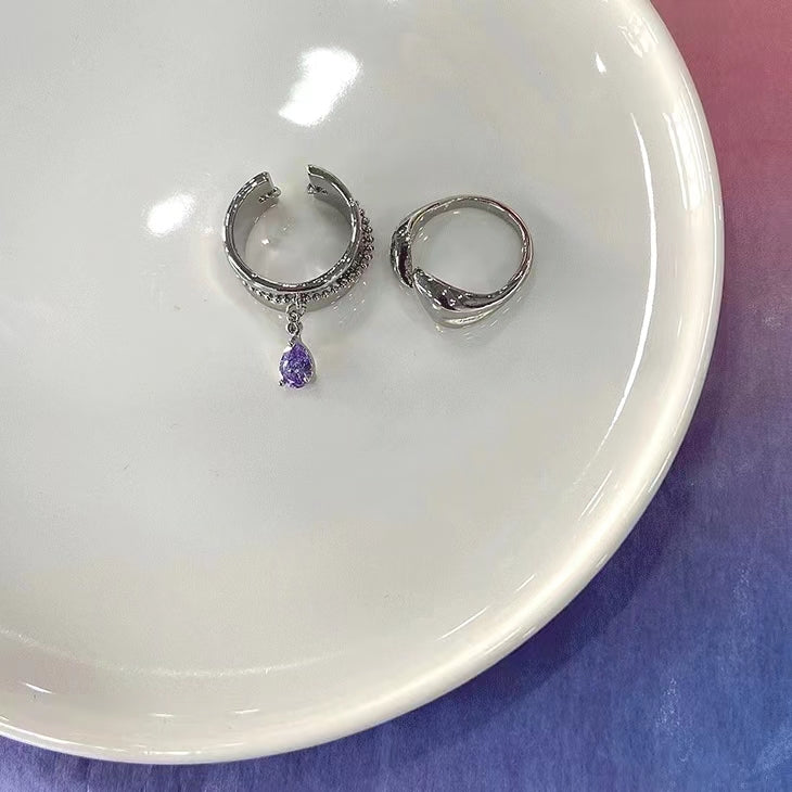 Hot girls bounty sharp tool Purple Diamond irregular cross Y2K ring, fashionable and cool design