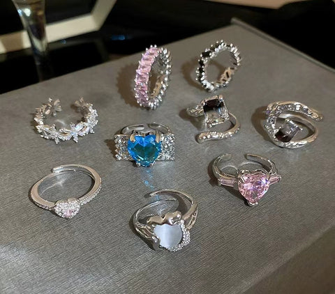 Irregular zirconia cat's eye stone oval open ring niche ins cold wind index finger ring personality trend hand jewelry