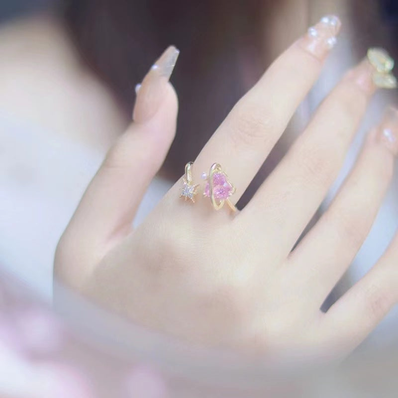 Japanese cute pink light luxury sweet girl open ring niche design sense light luxury senior sense finger ring