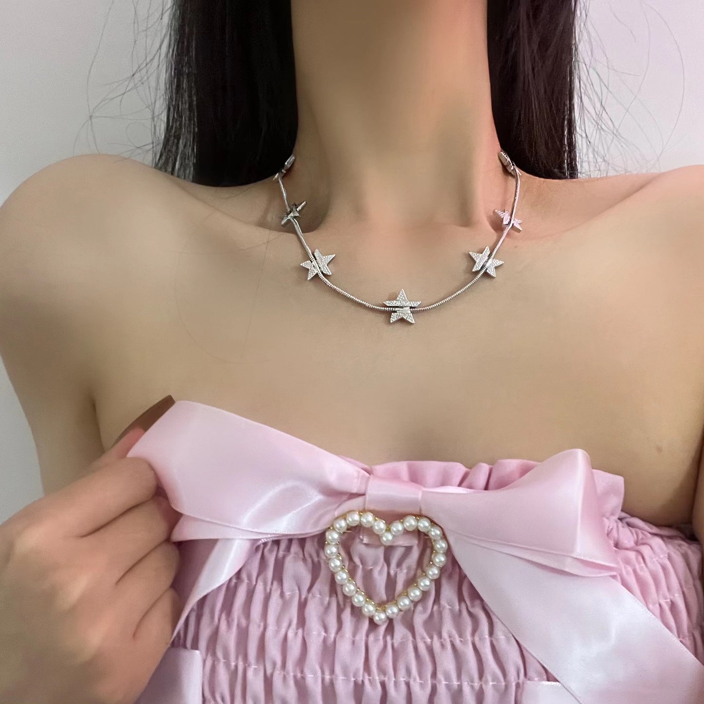 Korean niche collarbone chain retro high-end design sense Millennium y2k star necklace collarbone chain earrings