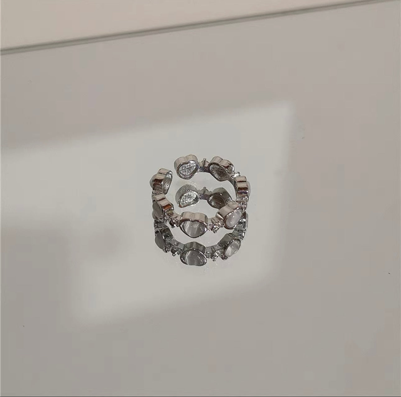 Kpop Fashion Punk Red Crystal Heart Irregular Open Metal Rin