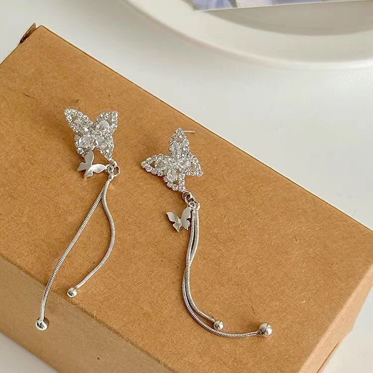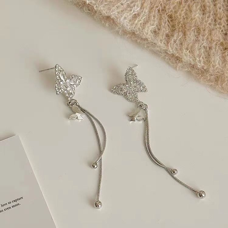 Long tassel butterfly earrings, light luxury and niche design, ear studs, 2023, new temperament, exquisite earrings, and earrings for women