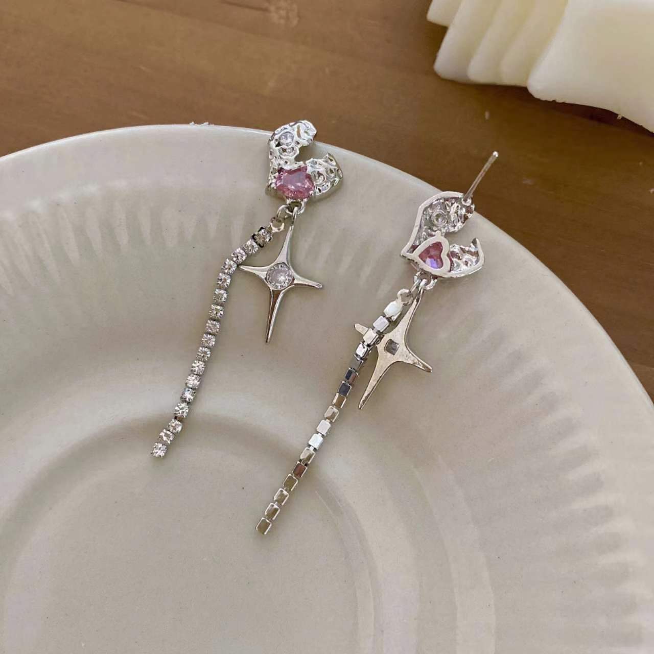 Love cross tetragrammaton tassel zirconia earrings s925 silver pin star earrings personality cold wind earrings earrings