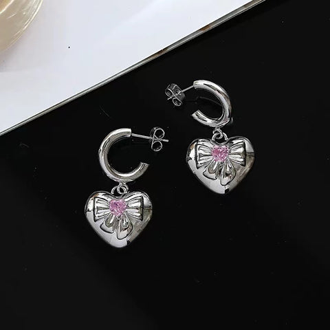 Love heart earrings female ins sweet cool wind personality fashion zirconia earrings light luxury niche senior sense of a hundred with earrings tide
