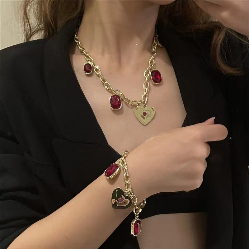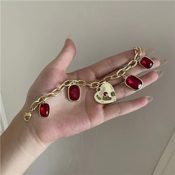 Love Ruby temperament chain French court brass plated 18K Gold Bracelet
