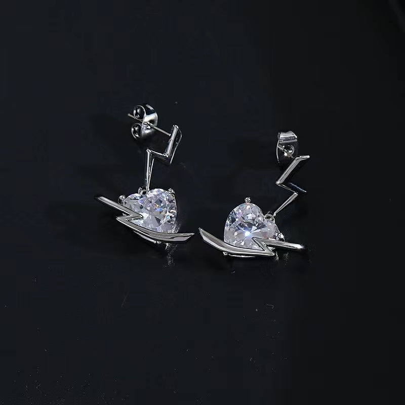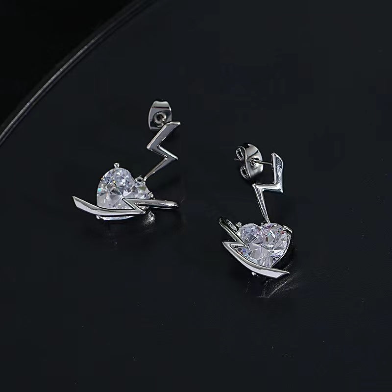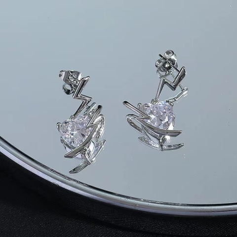 Love zircon earrings female ins niche design sense personality fashion 925 silver needle earrings sweet cool senior sense earrings