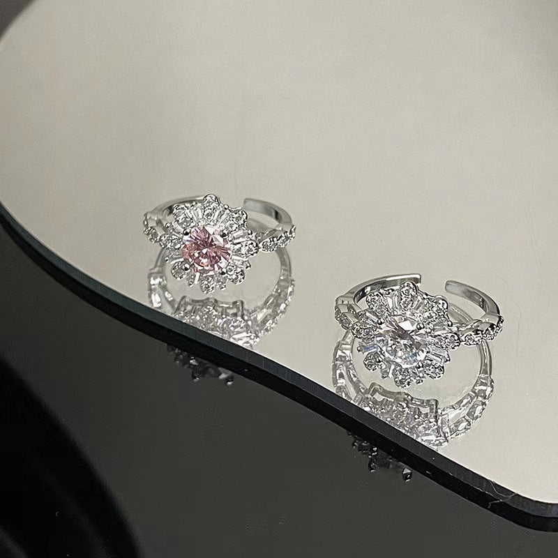 Luxury and luxurious, with diamond inlay and zircon insets. Cold and indifferent fairy style ring. Female niche design with snowflake opening index finger