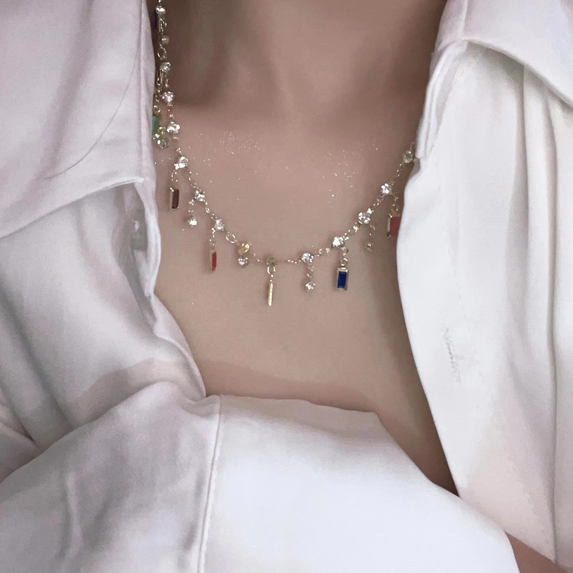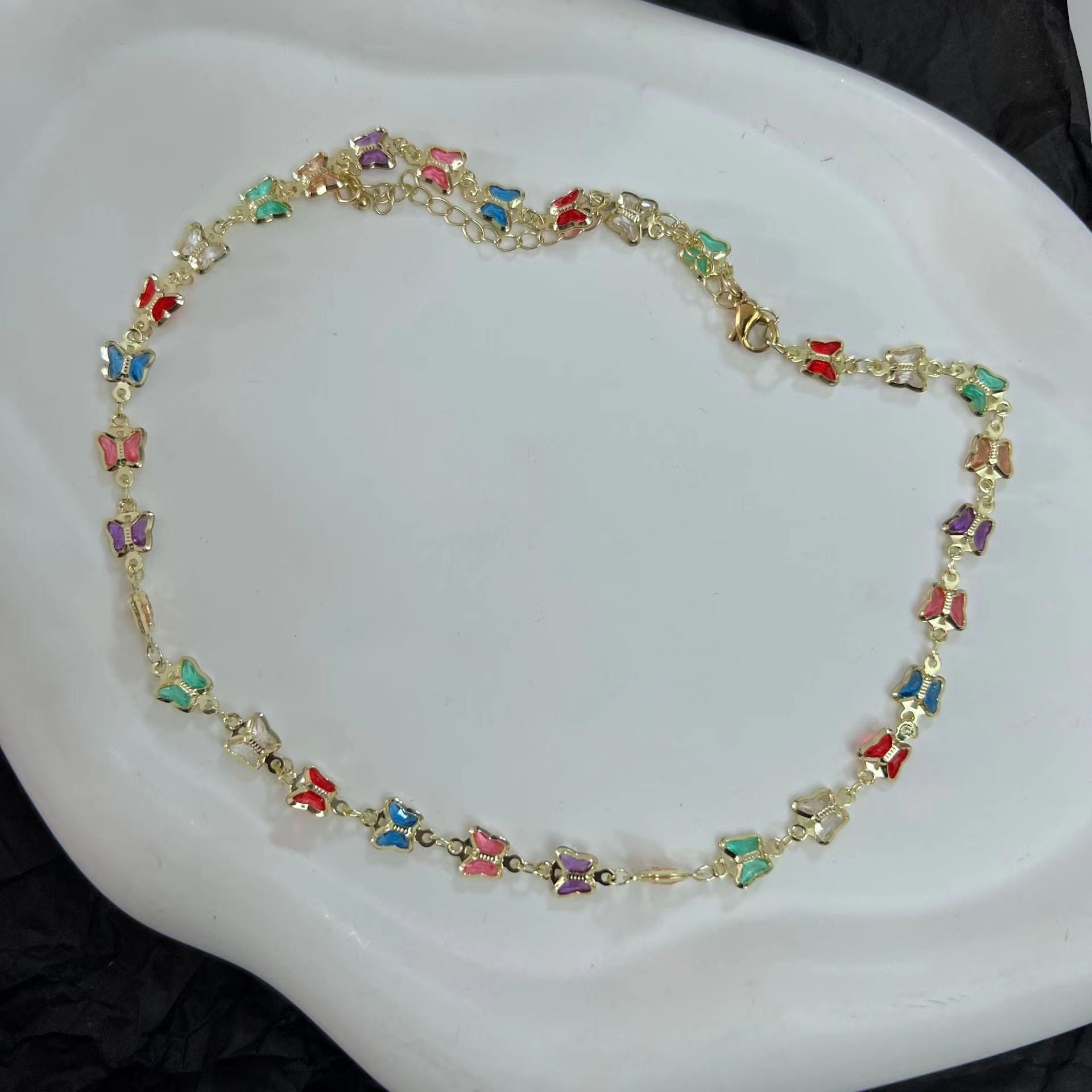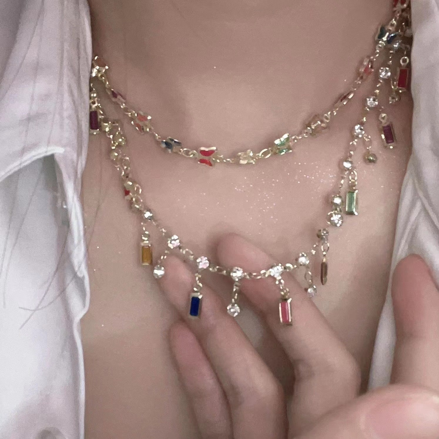 Mermaid Princess Advanced Colorful Crystal Butterfly Pendant Necklace with Light Luxury and Small Design Collar Chain Neckchain Accessories