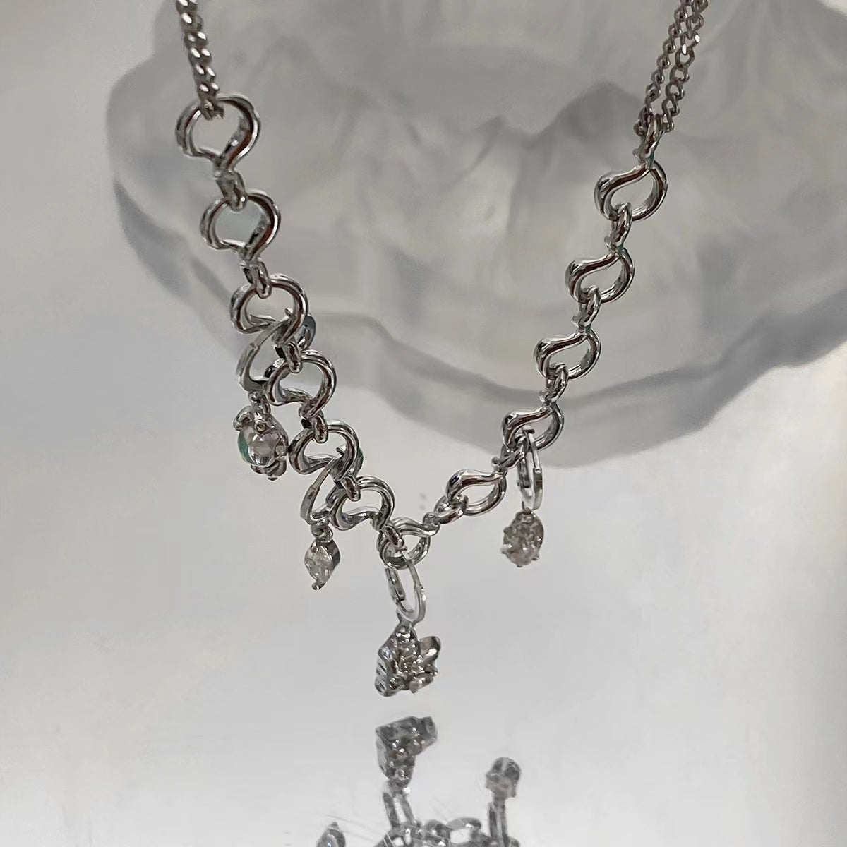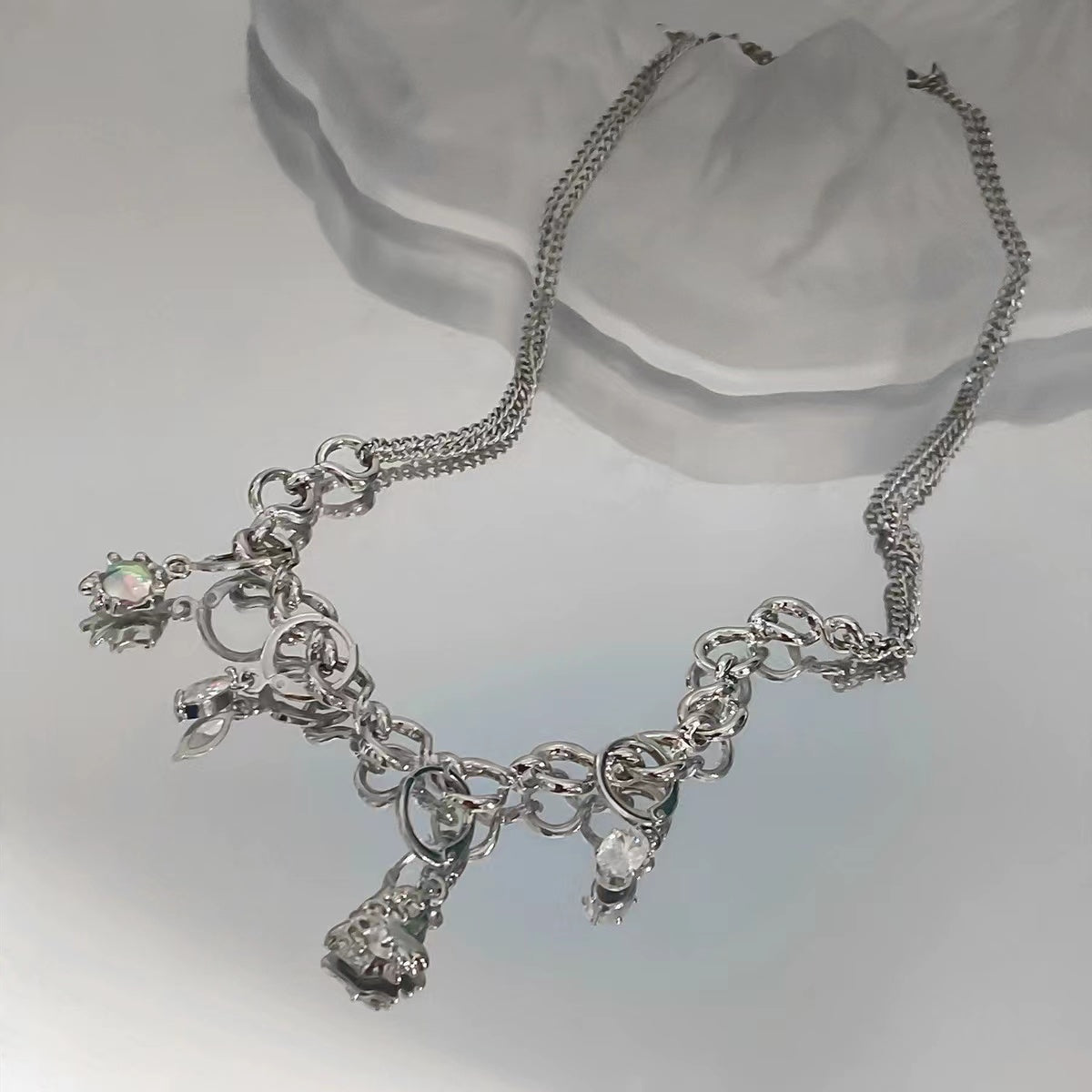Moonlight zirconia rhinestone detachable earrings necklace female hip-hop sweet cool wind niche design senior sense of collarbone chain tide
