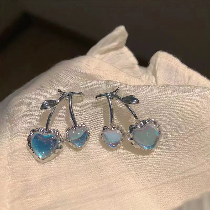 Moonstone cherry earrings ~ senior sense ins niche design earrings love chic hot girl light luxury sweet cool earrings