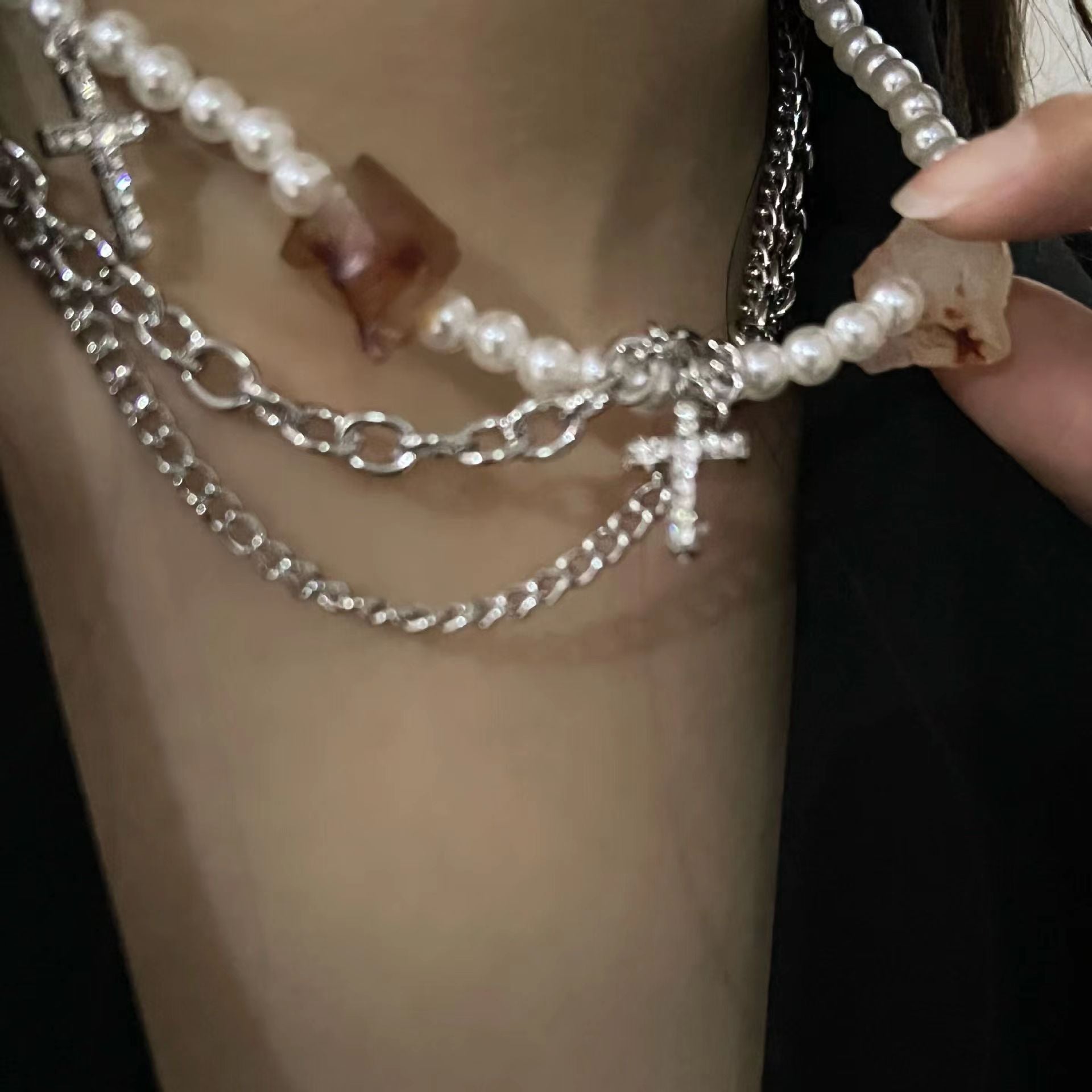 Artificial ore shell beads metal cross niche country trend chain bracelet