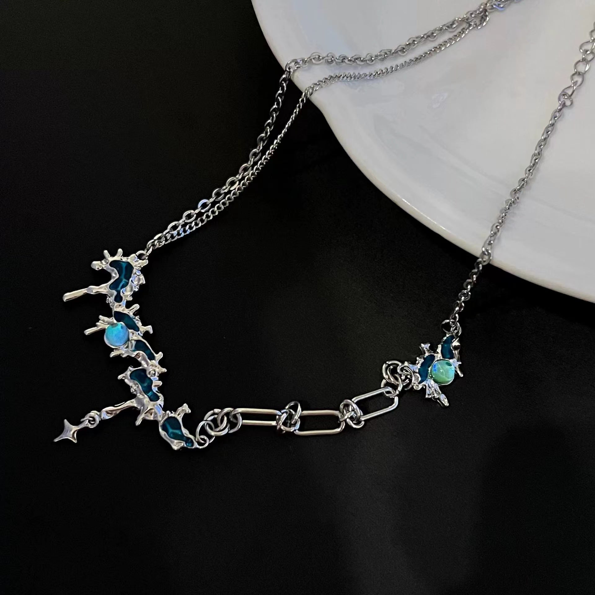 Glacier tassel pearl patchwork necklace