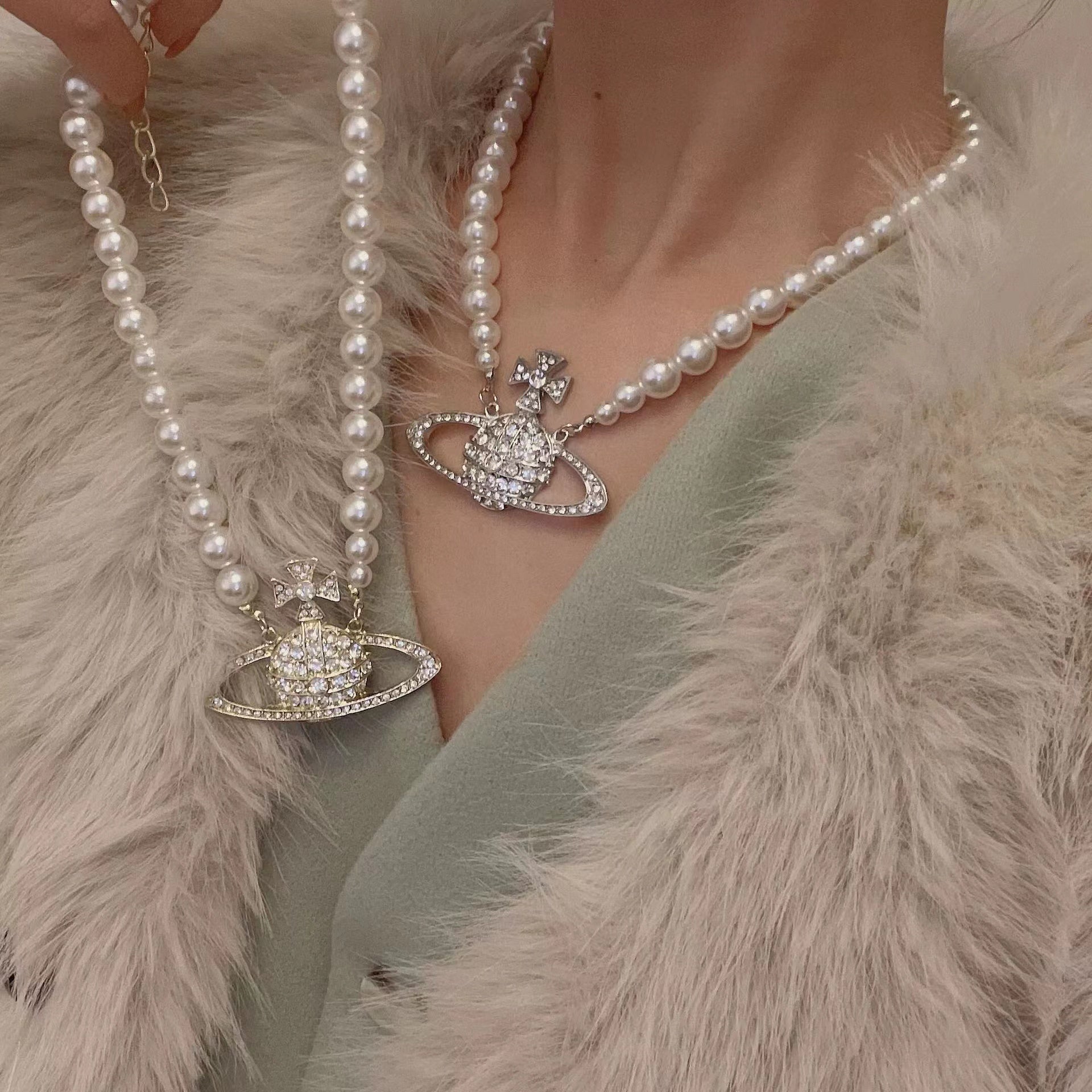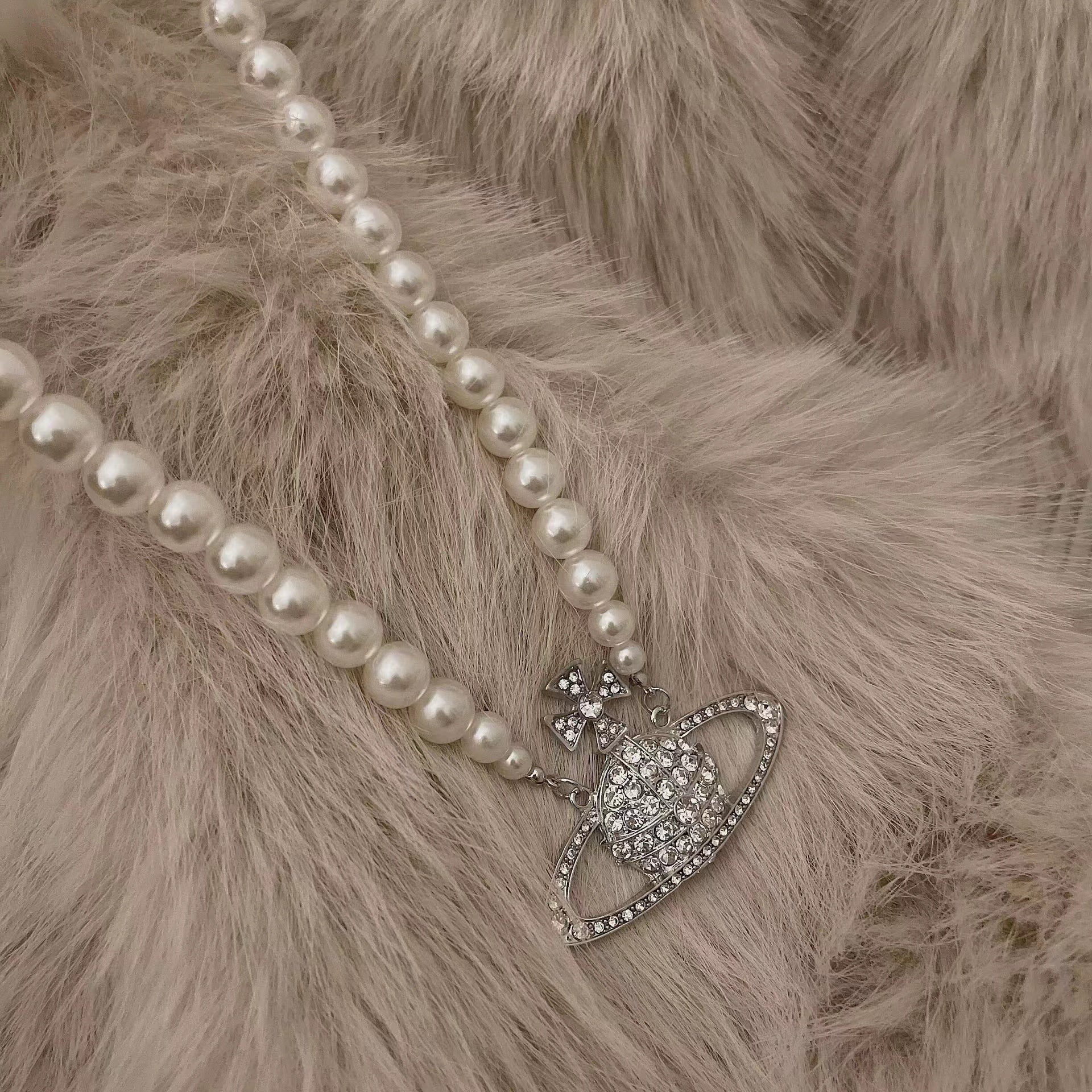 Vintage classic pearl choker Swarovski rhinestone collarbone chain