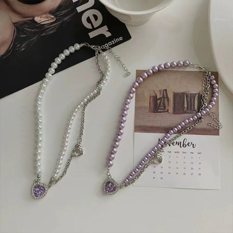 Purple love rhinestone necklace