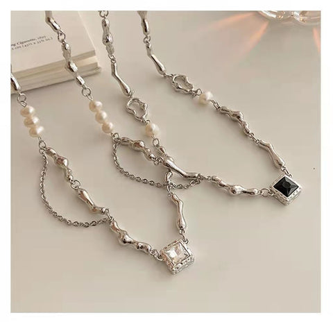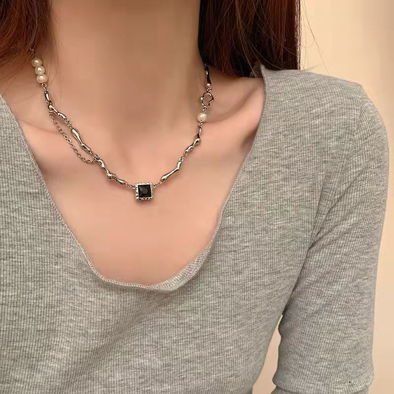 Temperament beaded necklace with collarbone chain