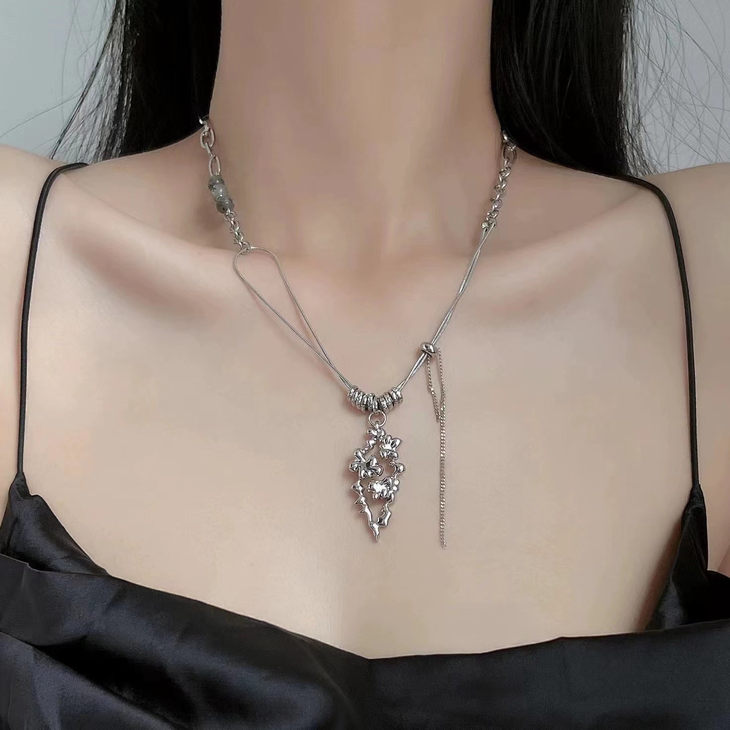 Peaceful clasp shape hand-made beads long niche metal country style necklace