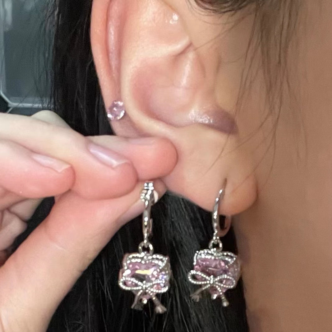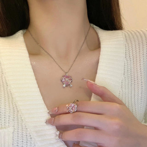 Princess style pink diamond love gemstone series 18k gold plated necklace