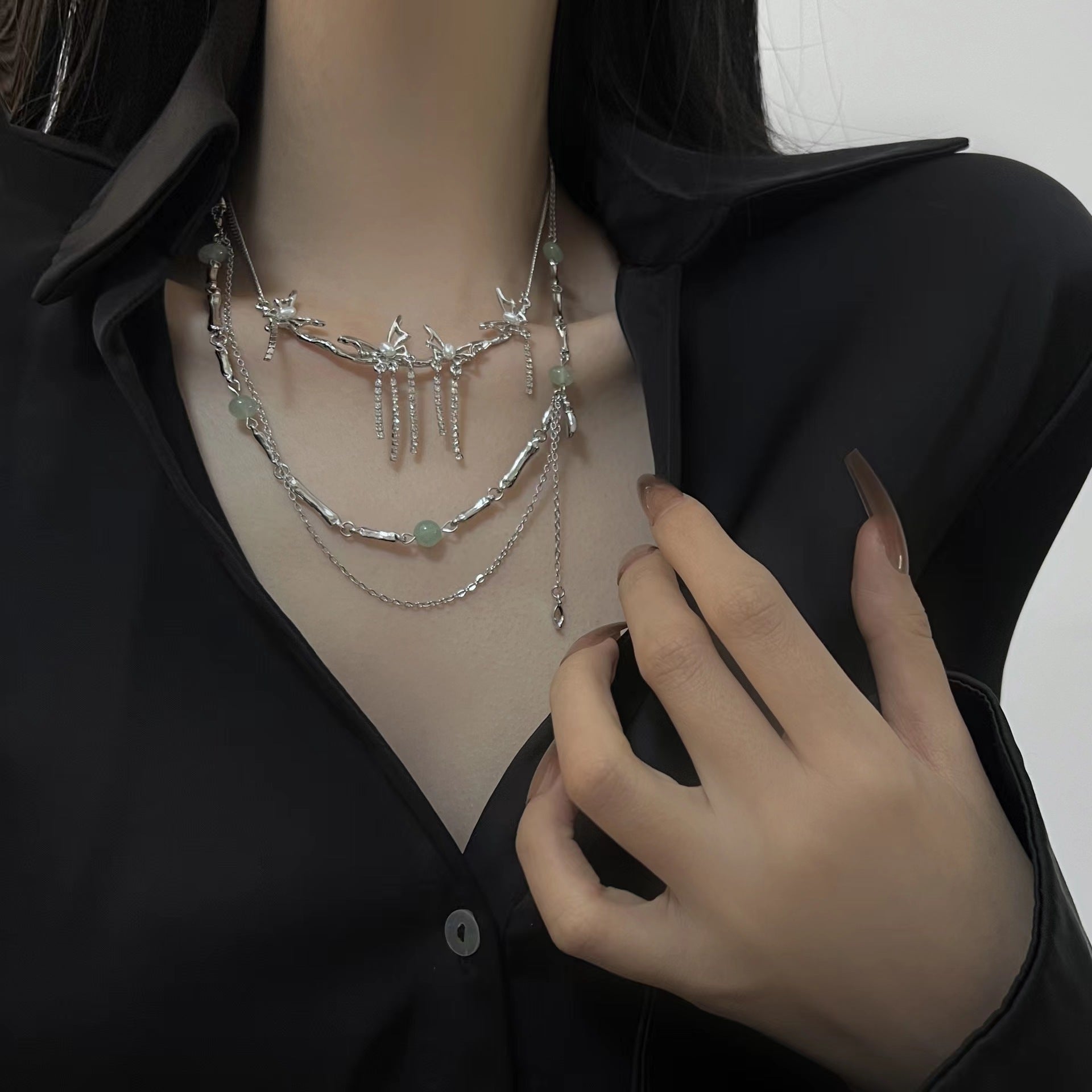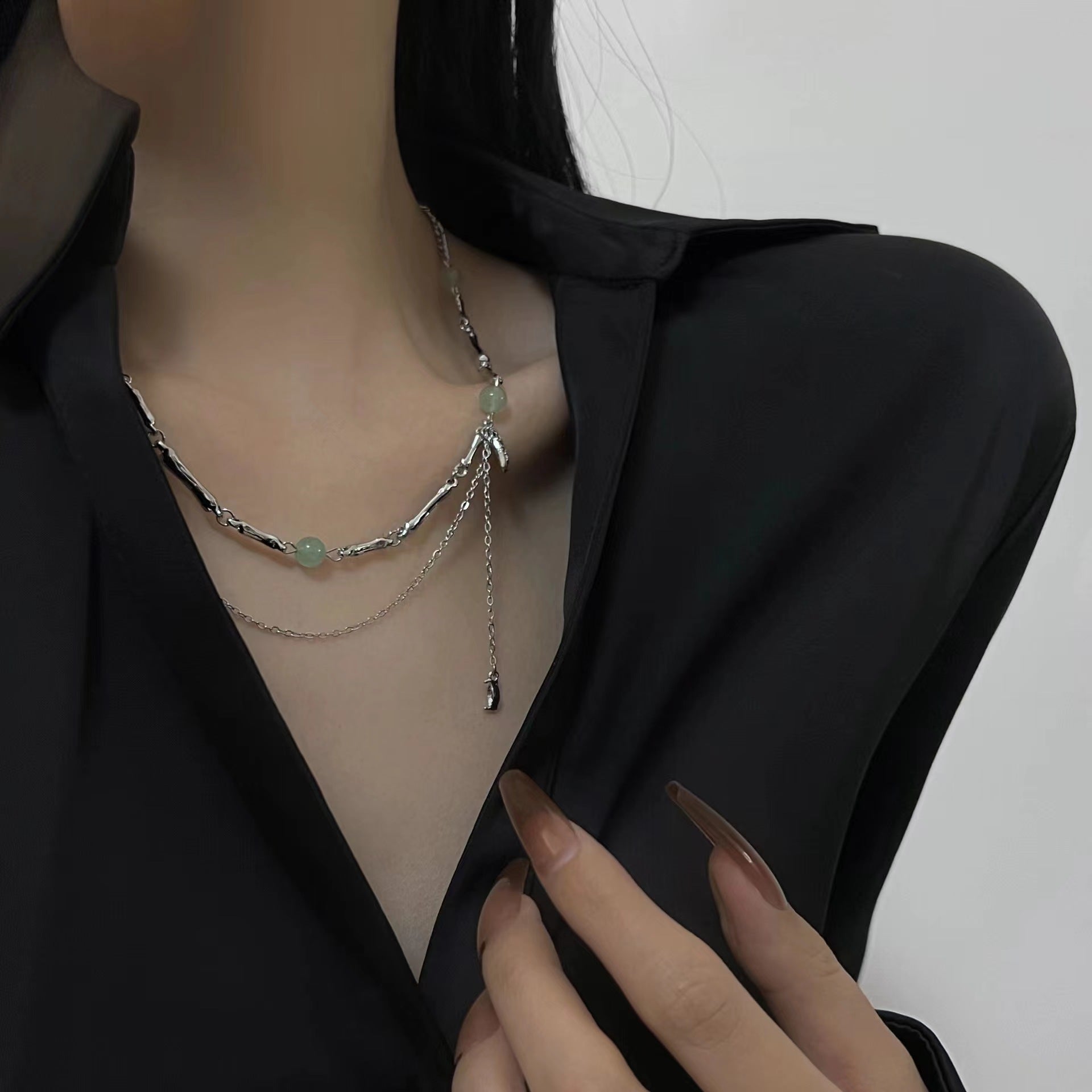 New Chinese style bamboo knot water drop tassel necklace with a male and female niche design, fashionable, sweet and cool collarbone chain trend