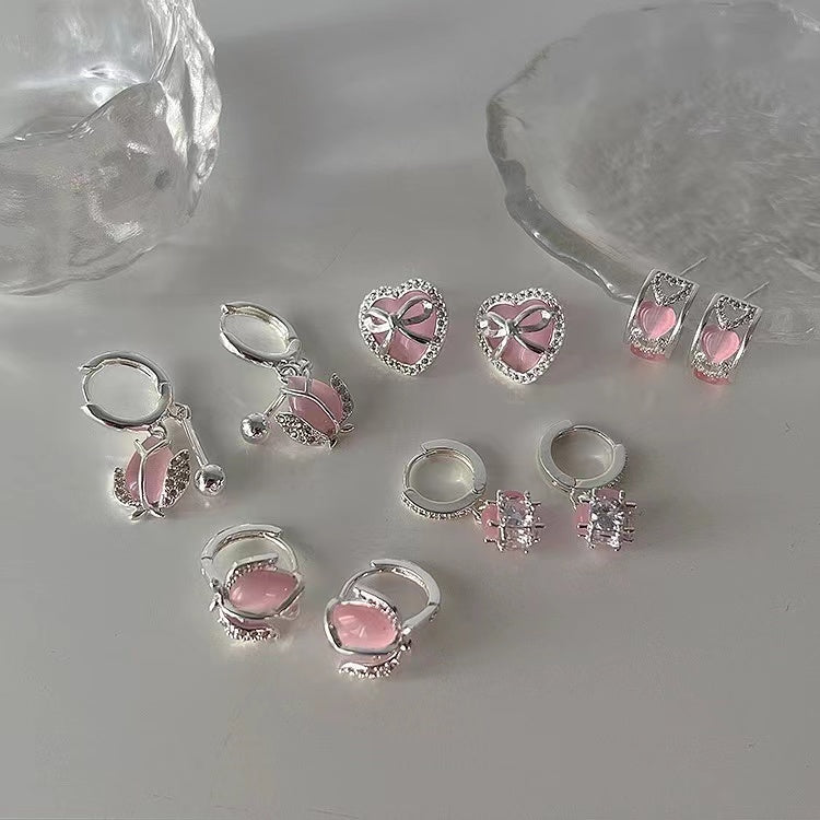 Niche design sense cat's eye stone tulip zircon earrings female vintage personality simple and matching temperament stud earrings