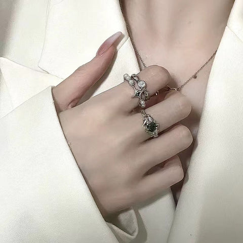 Niche original design sense pearl with diamond zircon open gemstone simple French premium net red women's ring