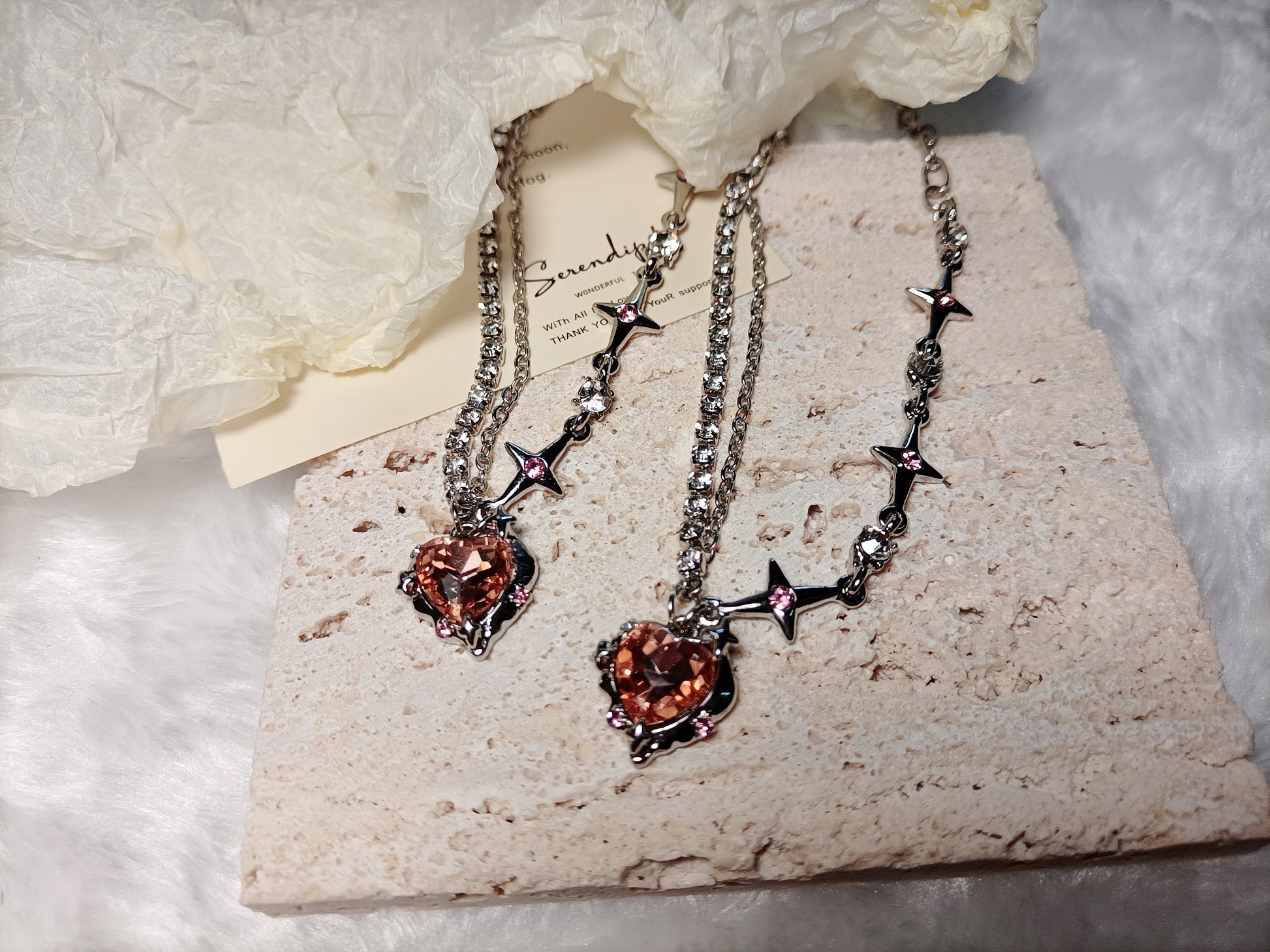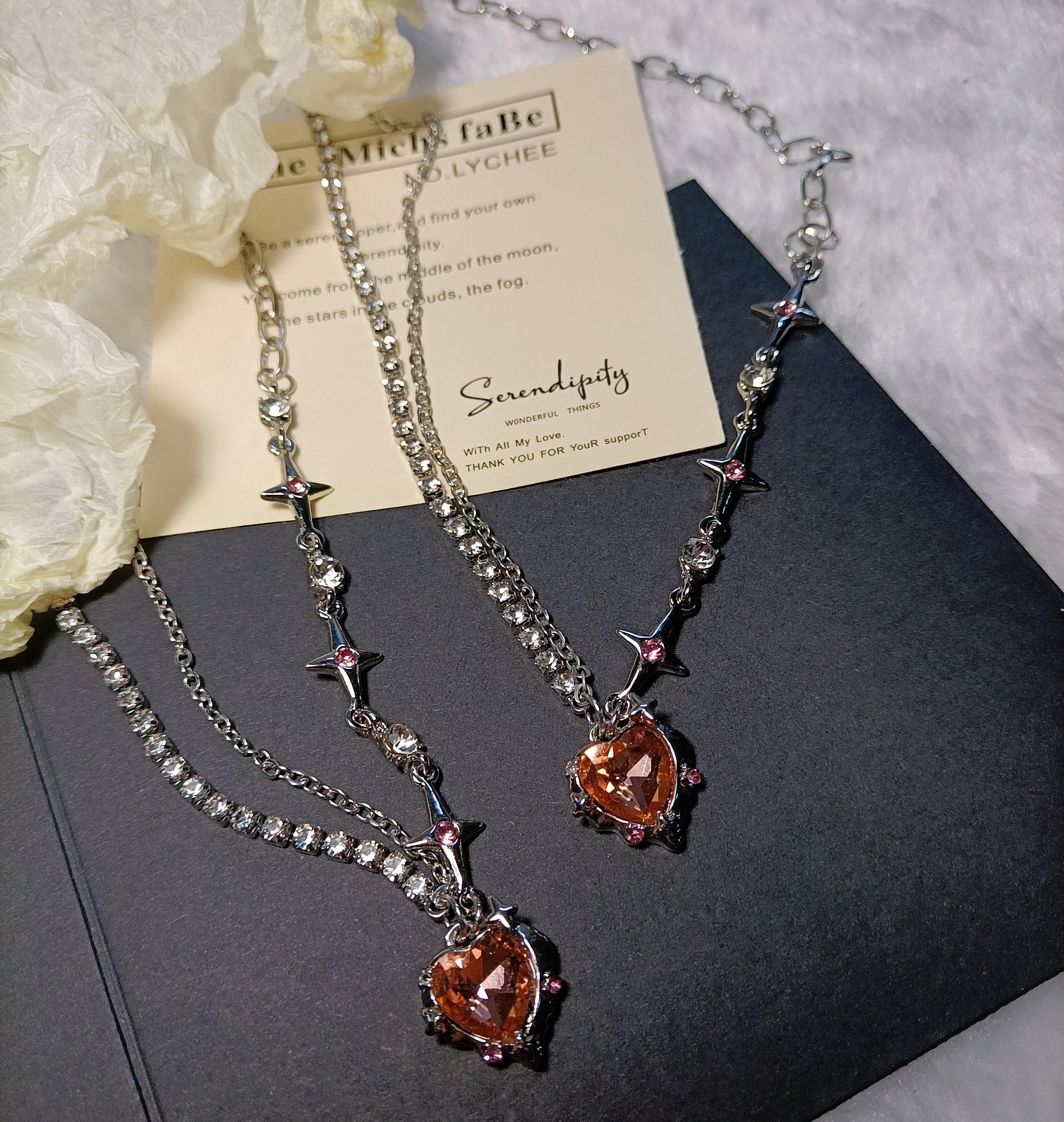 Hot girl orange diamond love star mango splicing diamond chain niche sweet cool silver plated necklace