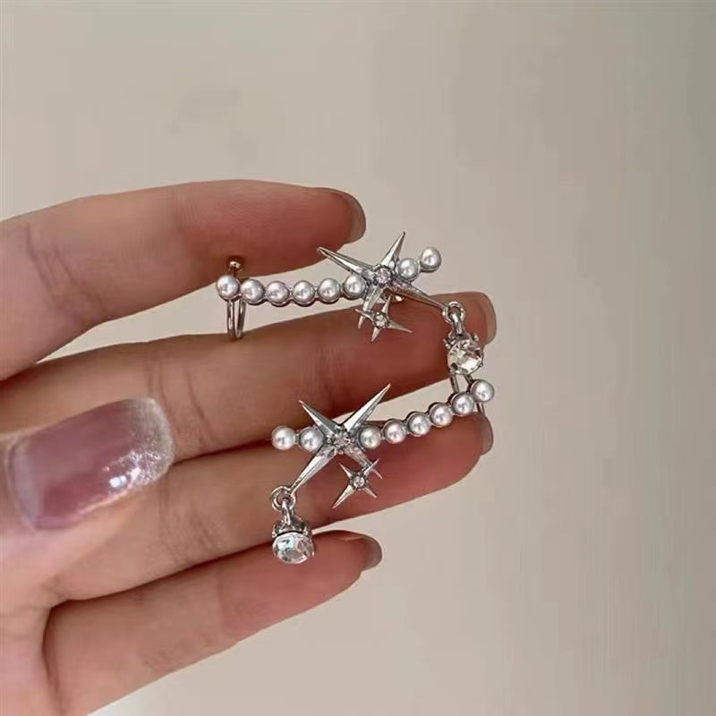 Pearl earrings, ear bone clip, one-piece star shaped design, flash diamond, high-grade sense, earrings with diamond personality