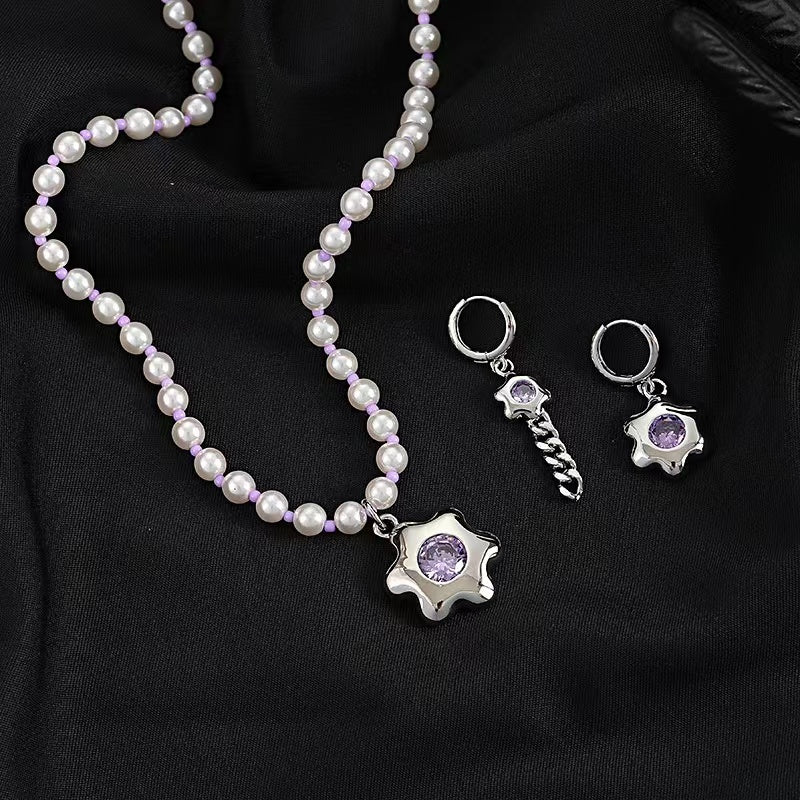 Pearl necklace female niche personalized fashion hundred match zircon flower pendant ins cold wind sweet cool collarbone chain tide