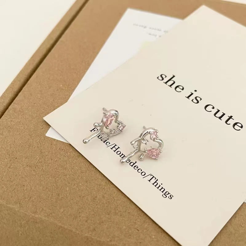 Pink lava wind metal sweet cool Earrings female Earrings