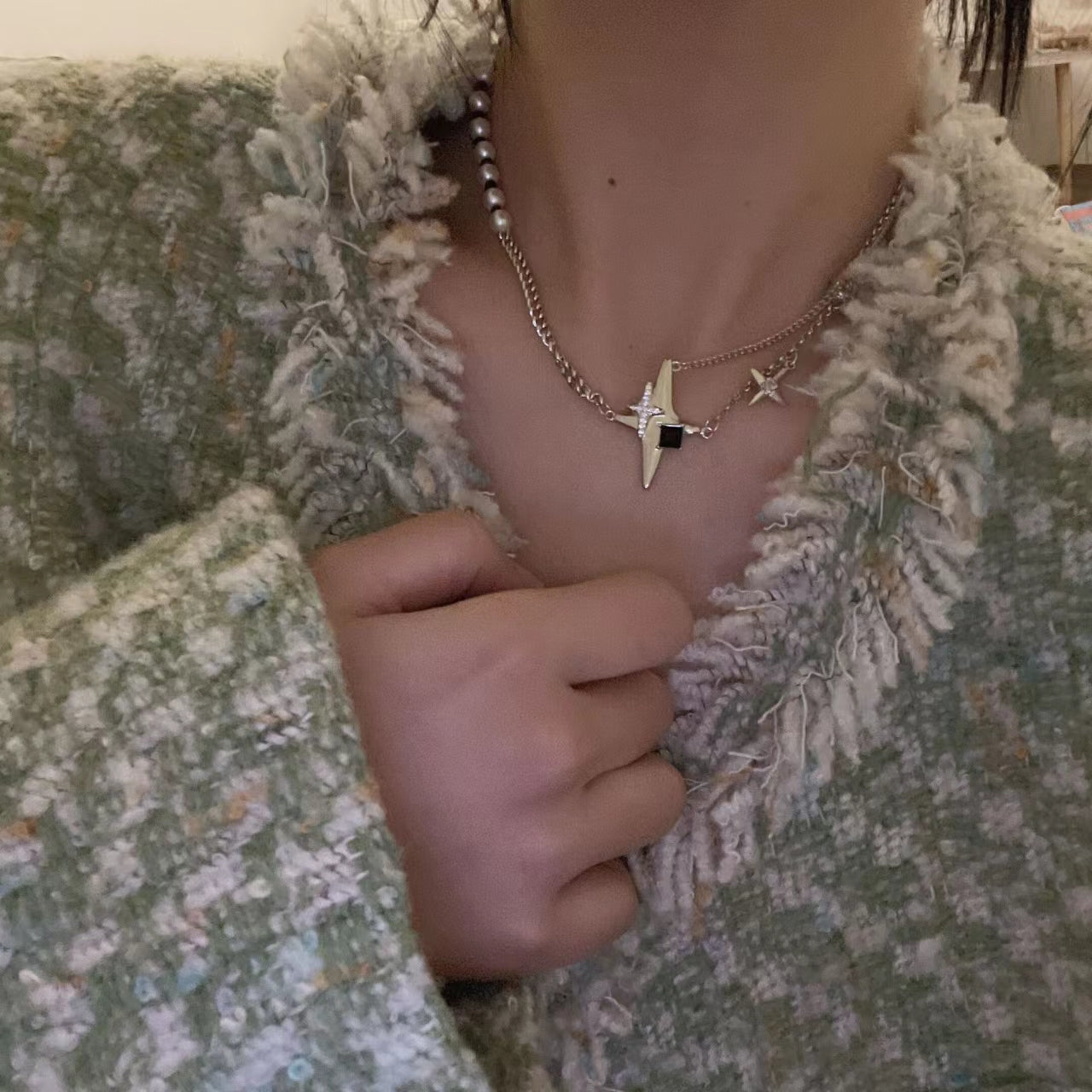 Asymmetric star necklace, metal black-and-white pearl splicing, niche design, fashion sense, new fashion in 2021
