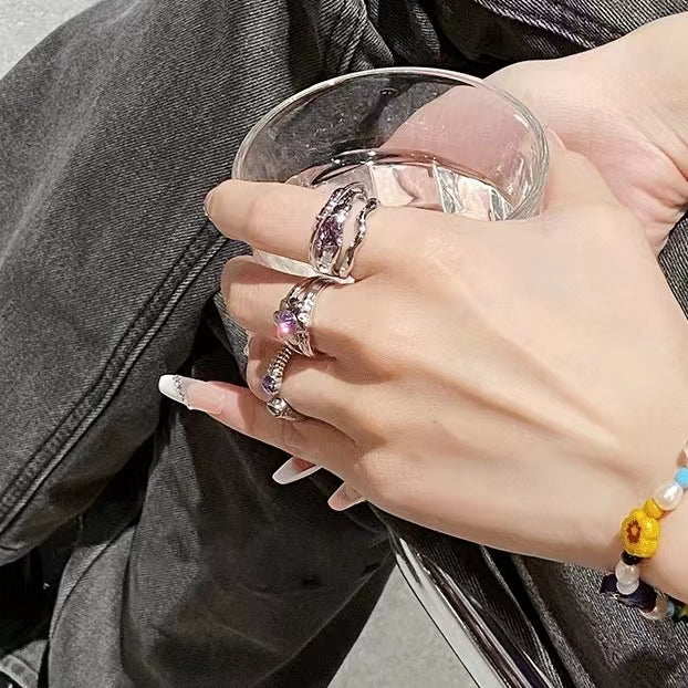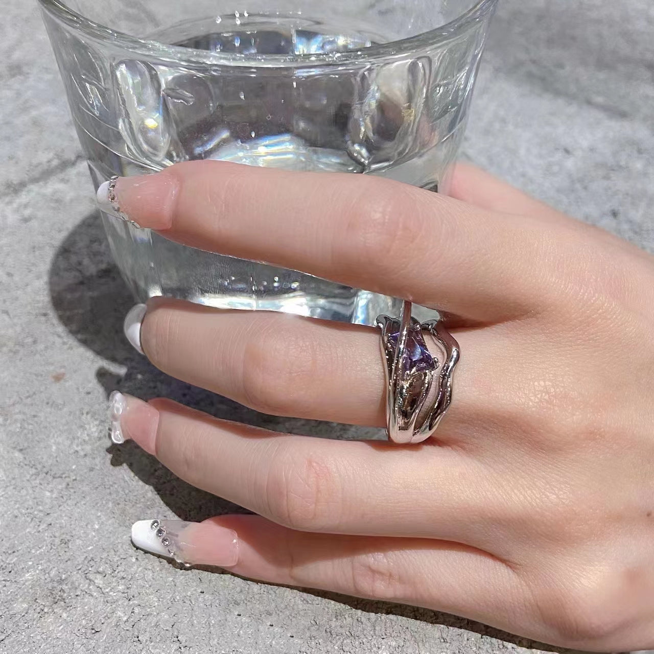 Purple Diamond Pendant, adjustable dream purple trend, sweet cool open ring, original ring of the minority