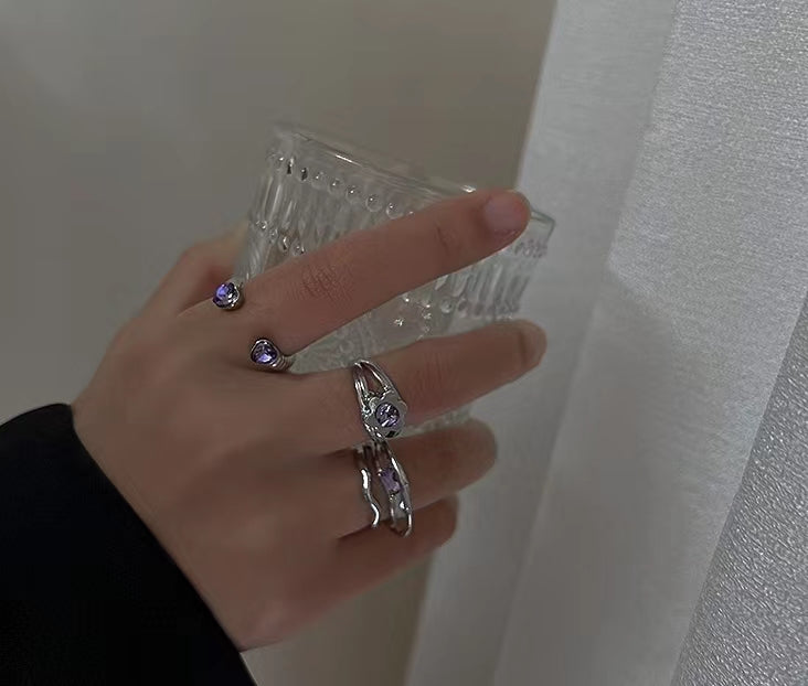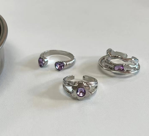 Purple irregular metal small flower diamond ring