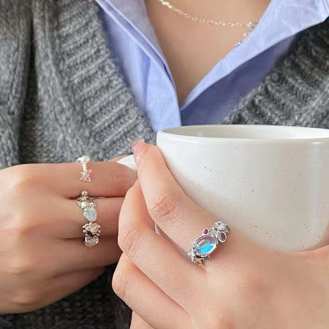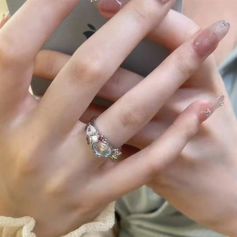 Opal moonstone fancy zircon pink diamond ring
