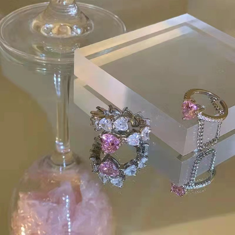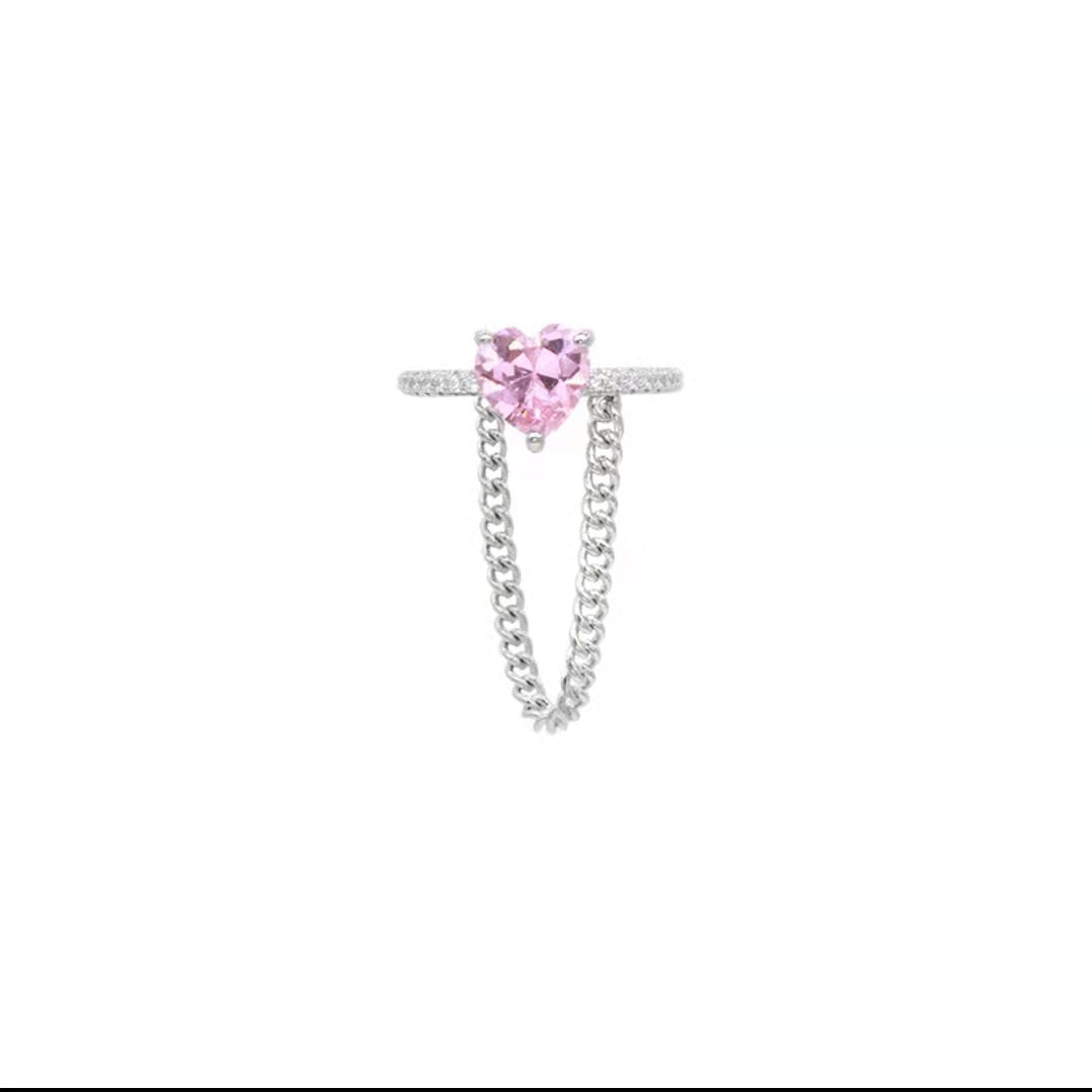 Pink love zirconia 925 sterling silver ring