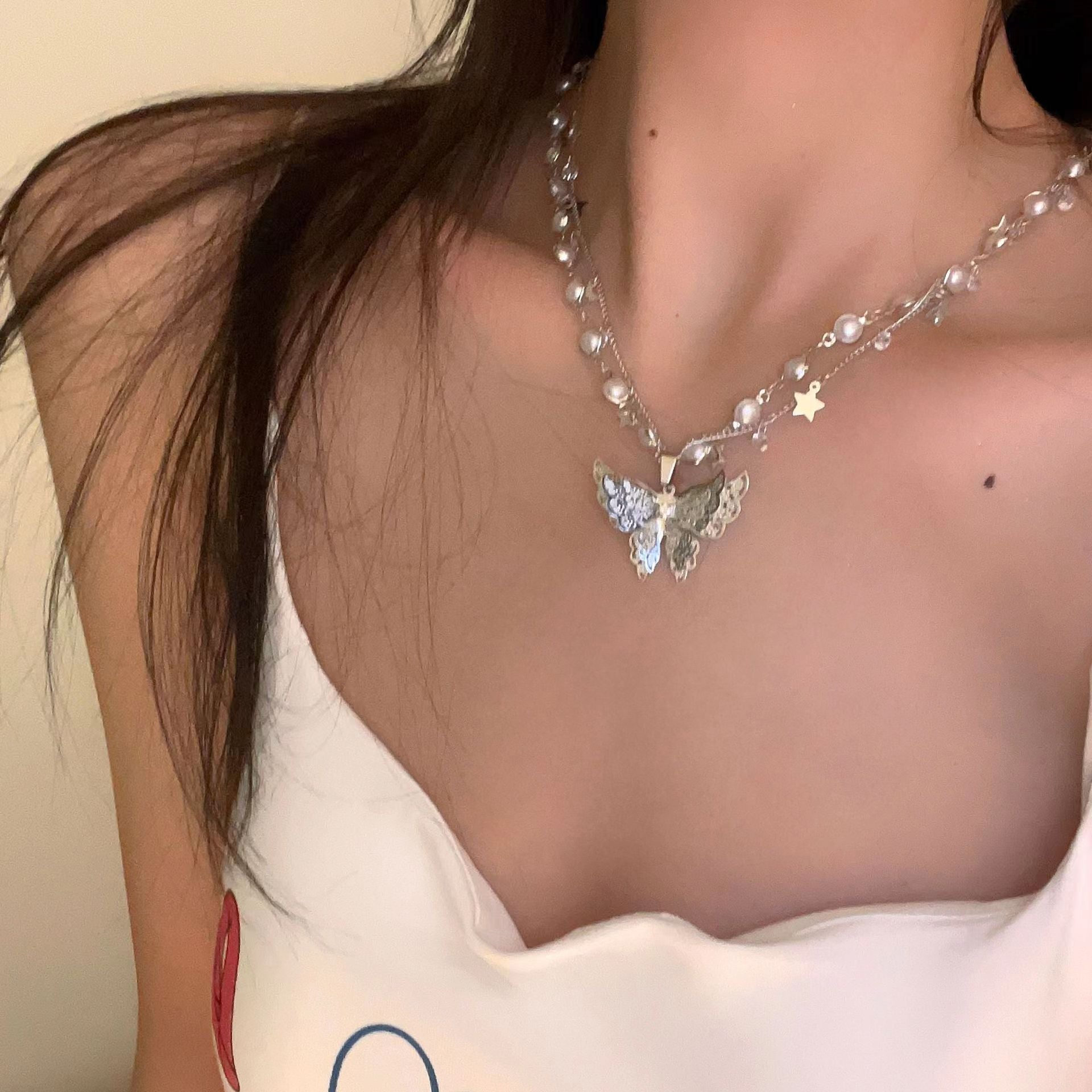 Romantic Out of Circle! Butterfly pearl necklace, light luxury and niche design, high-end necklace for women in spring and summer, collarbone chain matching