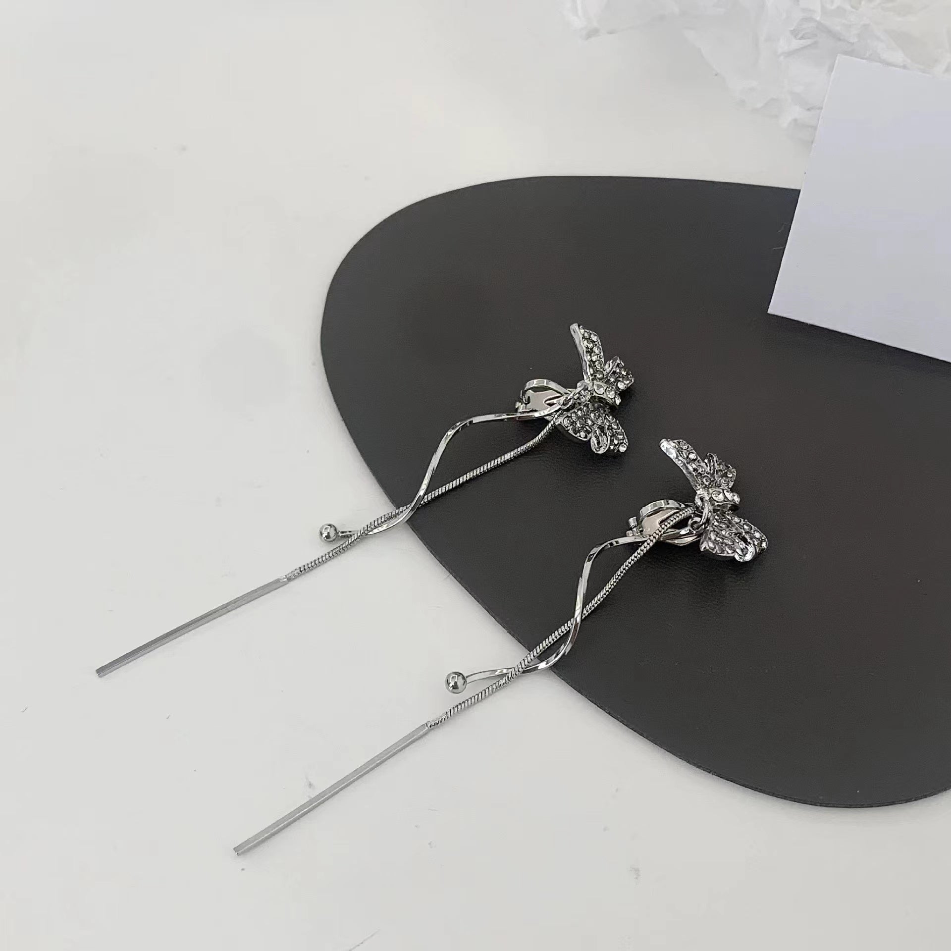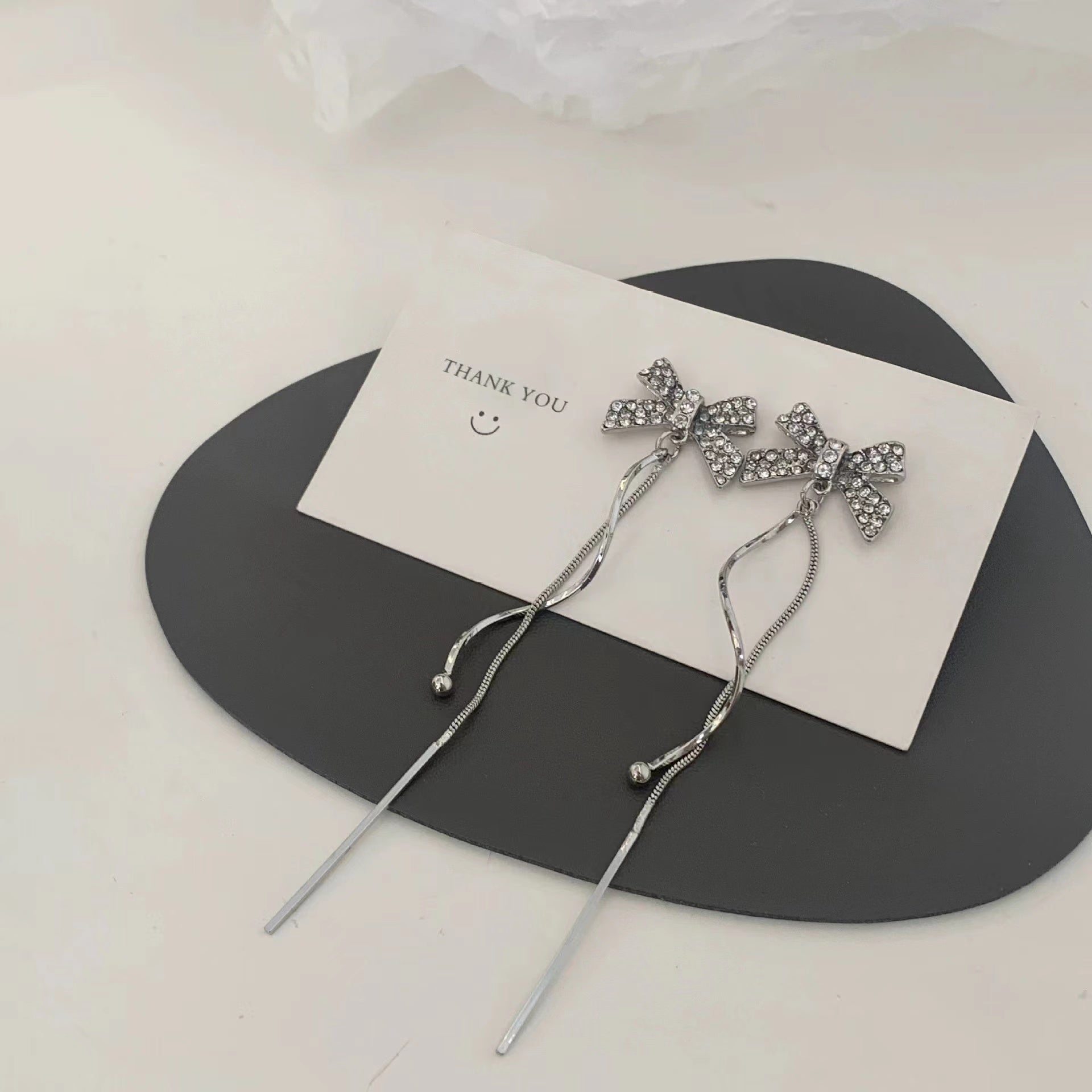 S925 silver pin 2022 new tassel bow earrings female earrings