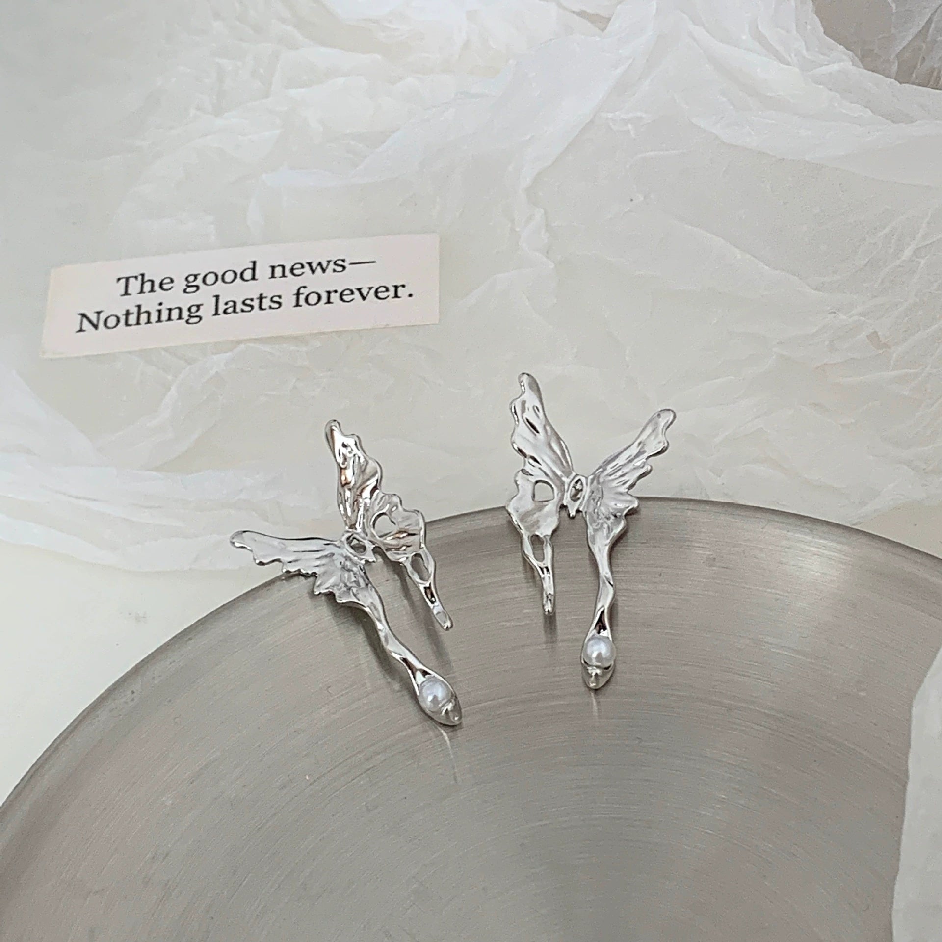 S925 silver pin sweet cool hot girl liquid butterfly senior sense earrings niche design sense cold sex style earrings
